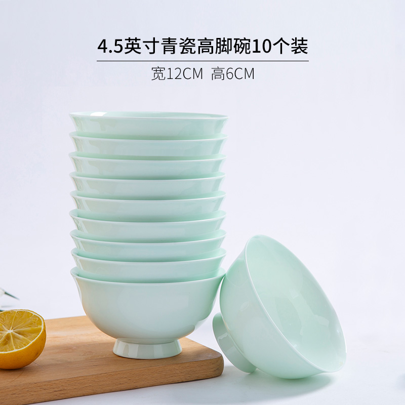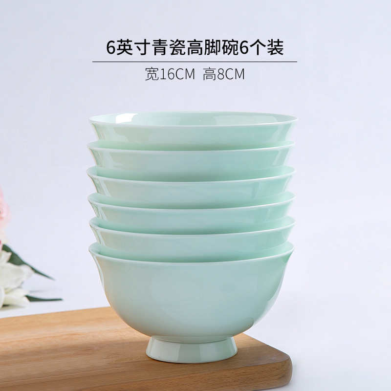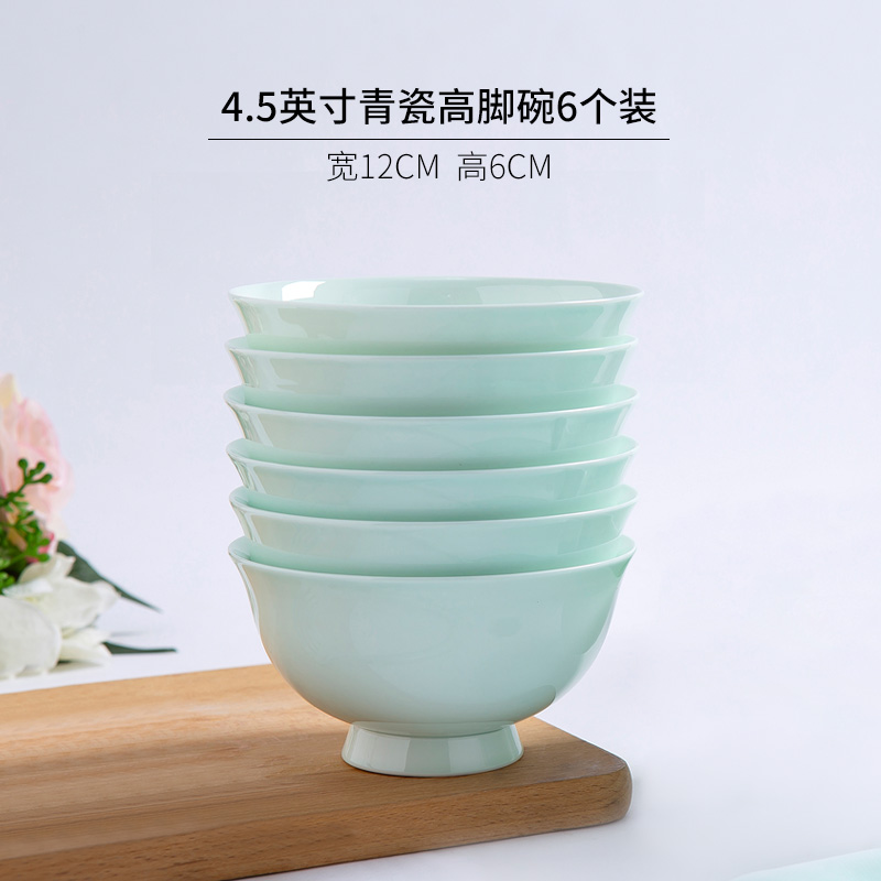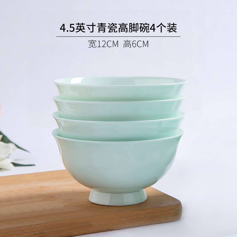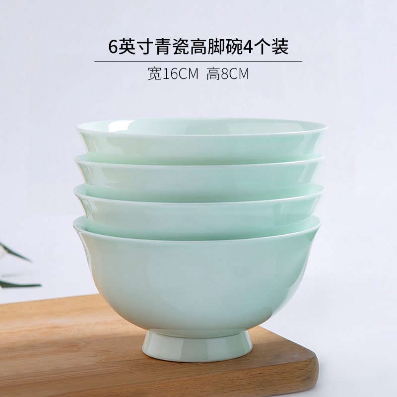 Jingdezhen 청자 가정용 뼈 중국 밥 그릇 중국 높은 발 그릇 세트 4/6/10 세라믹 그릇스토어 가기
