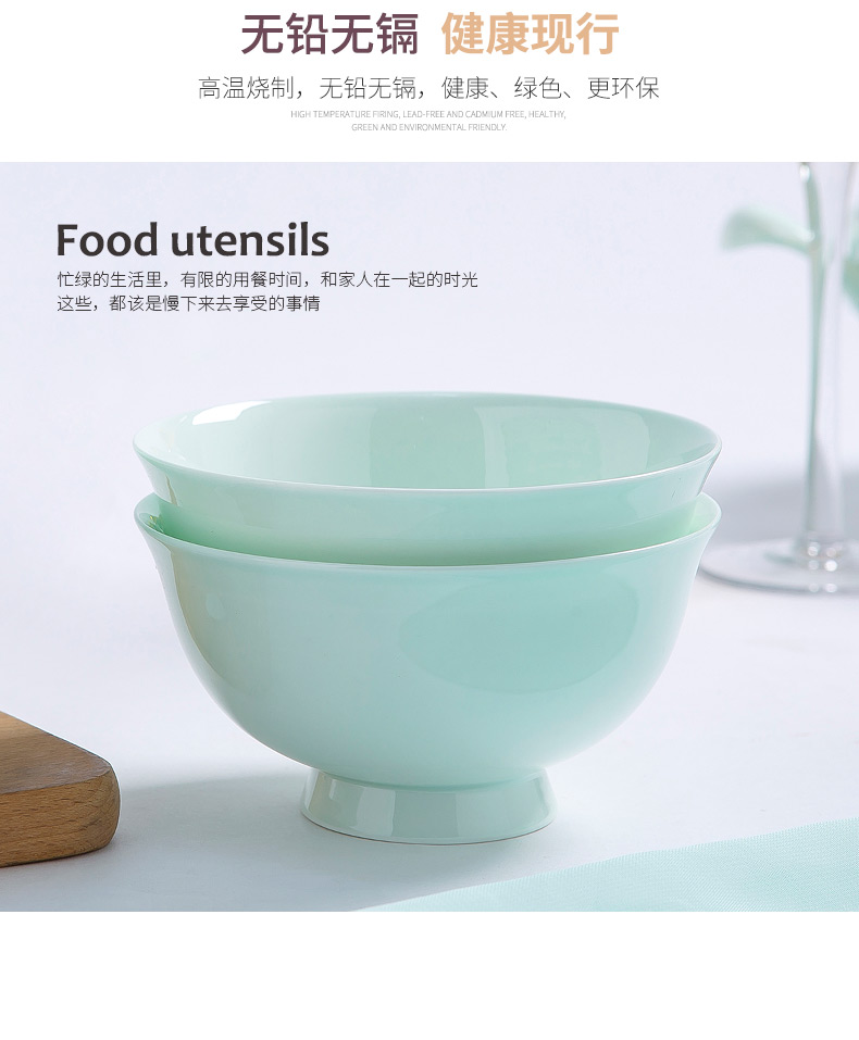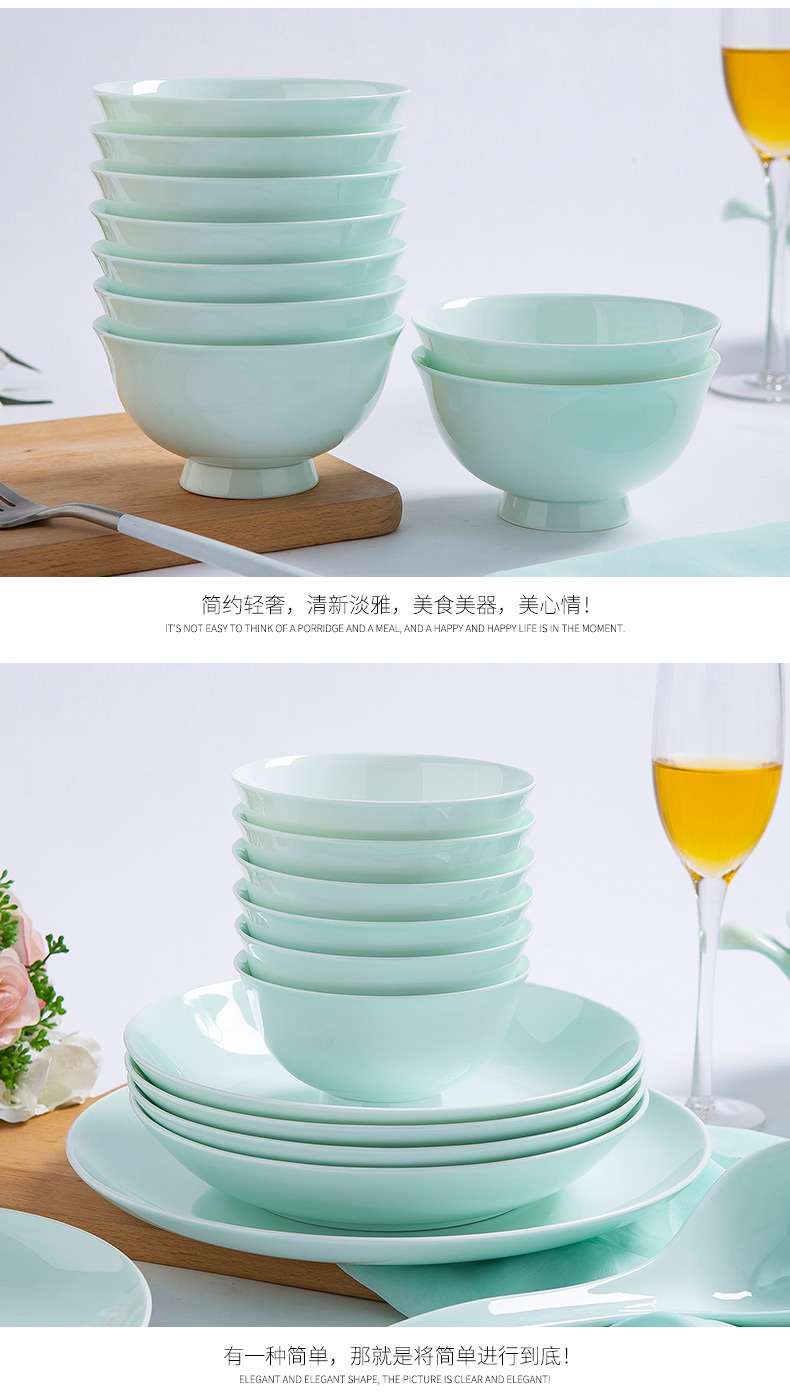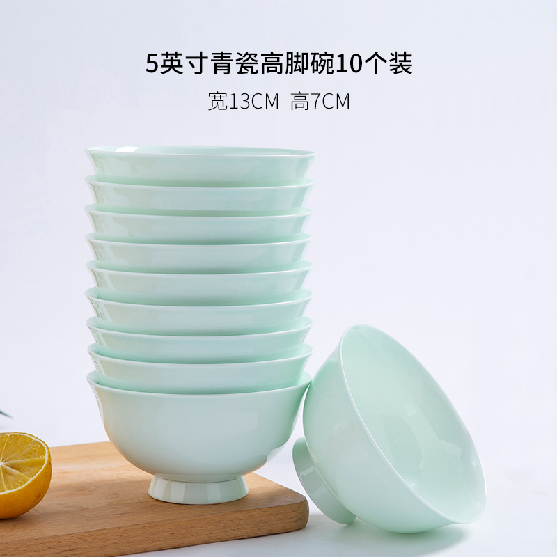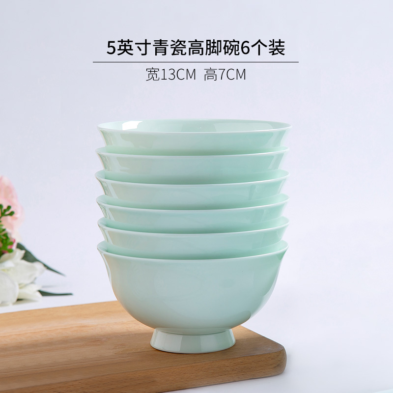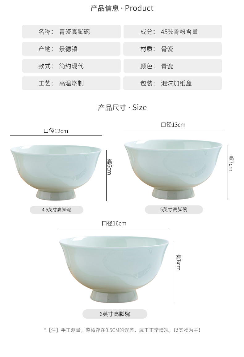 Jingdezhen 청자 가정용 뼈 중국 밥 그릇 중국 높은 발 그릇 세트 4/6/10 세라믹 그릇스토어 가기