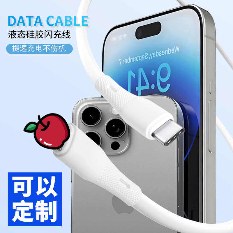 液态真硅胶数据线全兼容QC3.0快充适用苹果15小米三星手机充电线