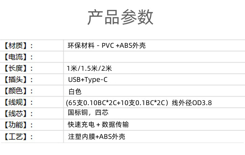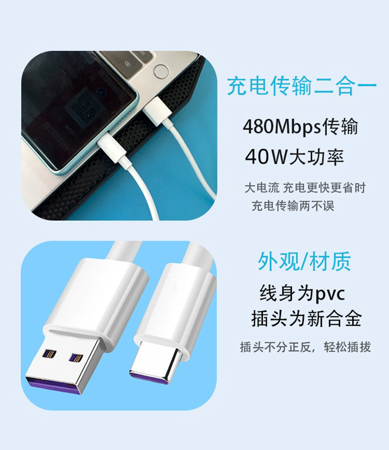 type-c手机数据线2米加长适用荣耀OPPO超级快充安卓充电器线批发