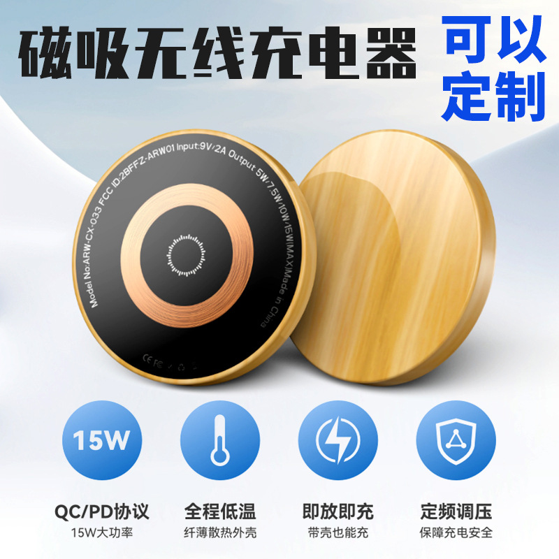 新款磁吸无线充电器PD15W快充超薄适用耳机手表苹果15手机无线充