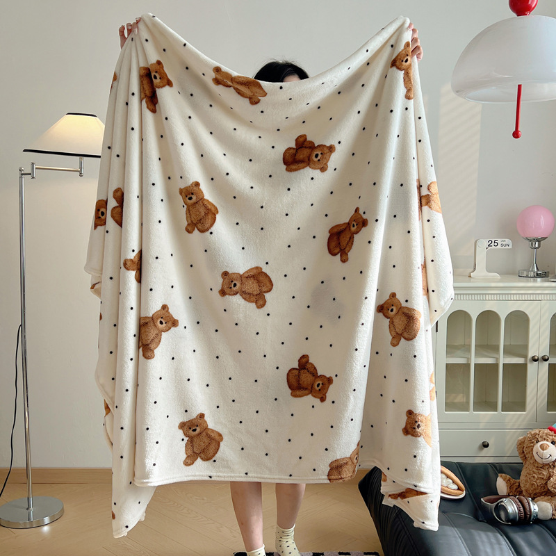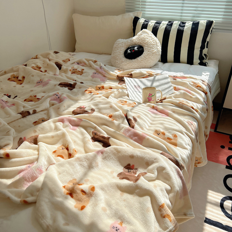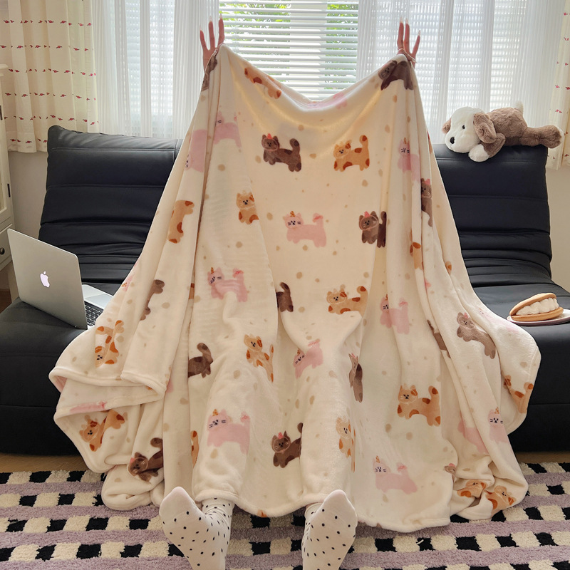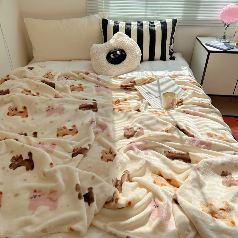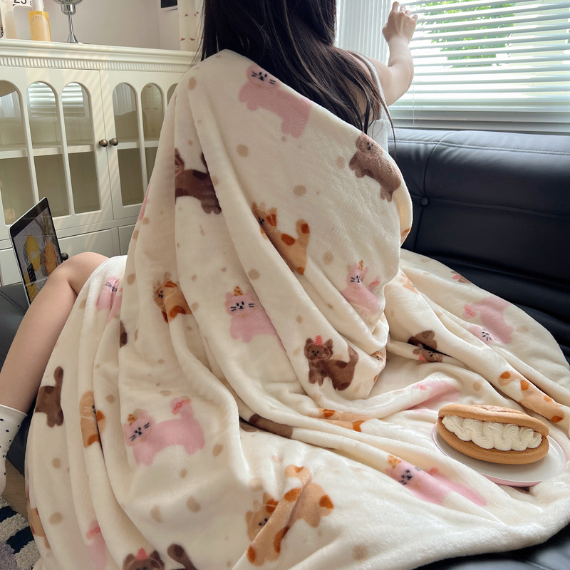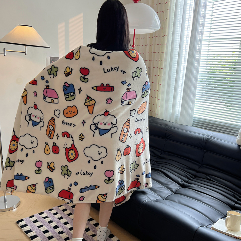 카툰 스타일 밀크 벨벳 프린트 양면 플리스 담요 사무실 낮잠 담요 두꺼운 보온 선물 담요 만화 프린트