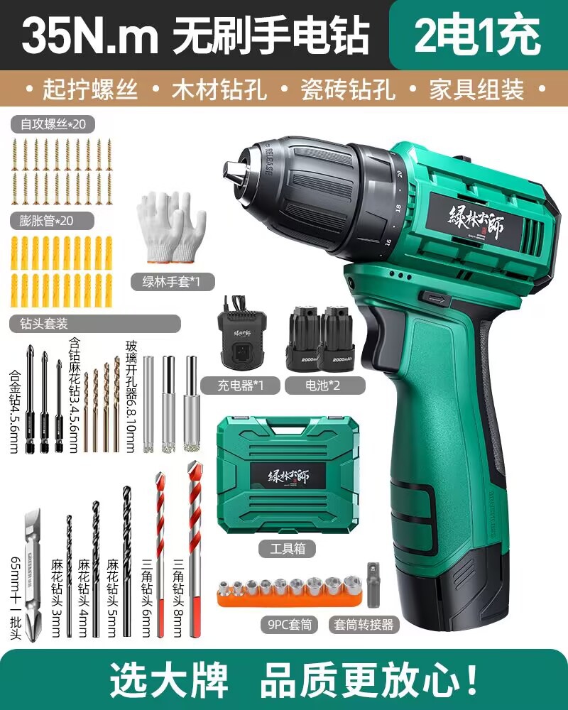 • 마스터 그린 포레스트-16.8v 브러시리스 [2 전기 및 1 충전] 드릴 및 트위스트 세트