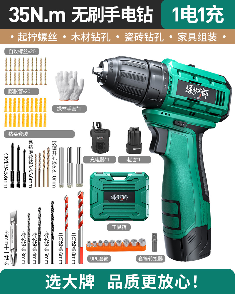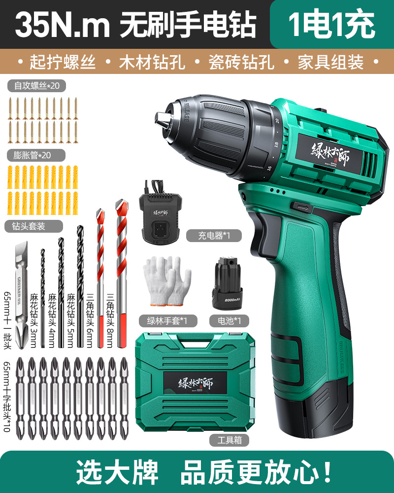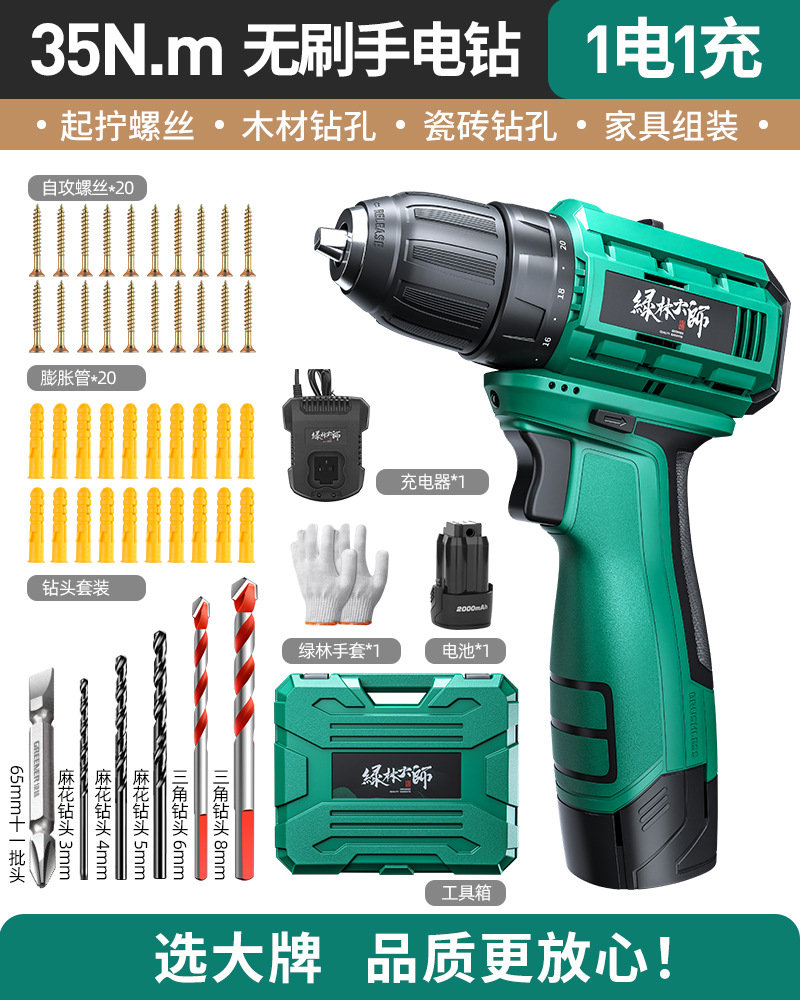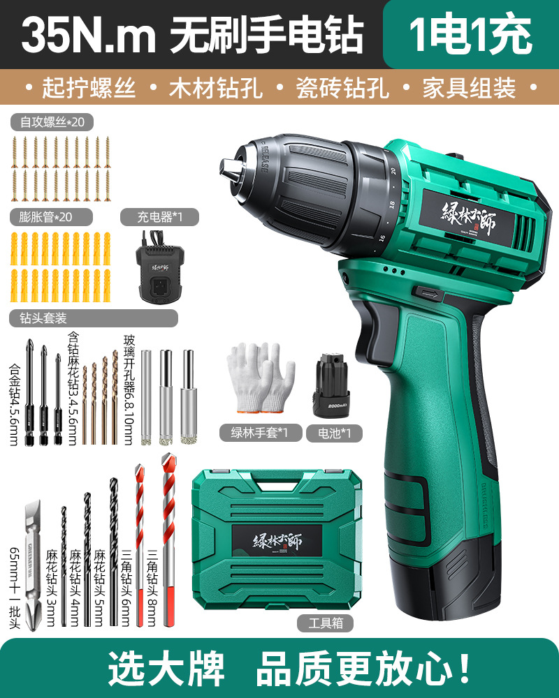 • 마스터 그린 포레스트-16.8v 브러시리스 [1 전기 1 충전] 드릴 및 트위스트 세트
