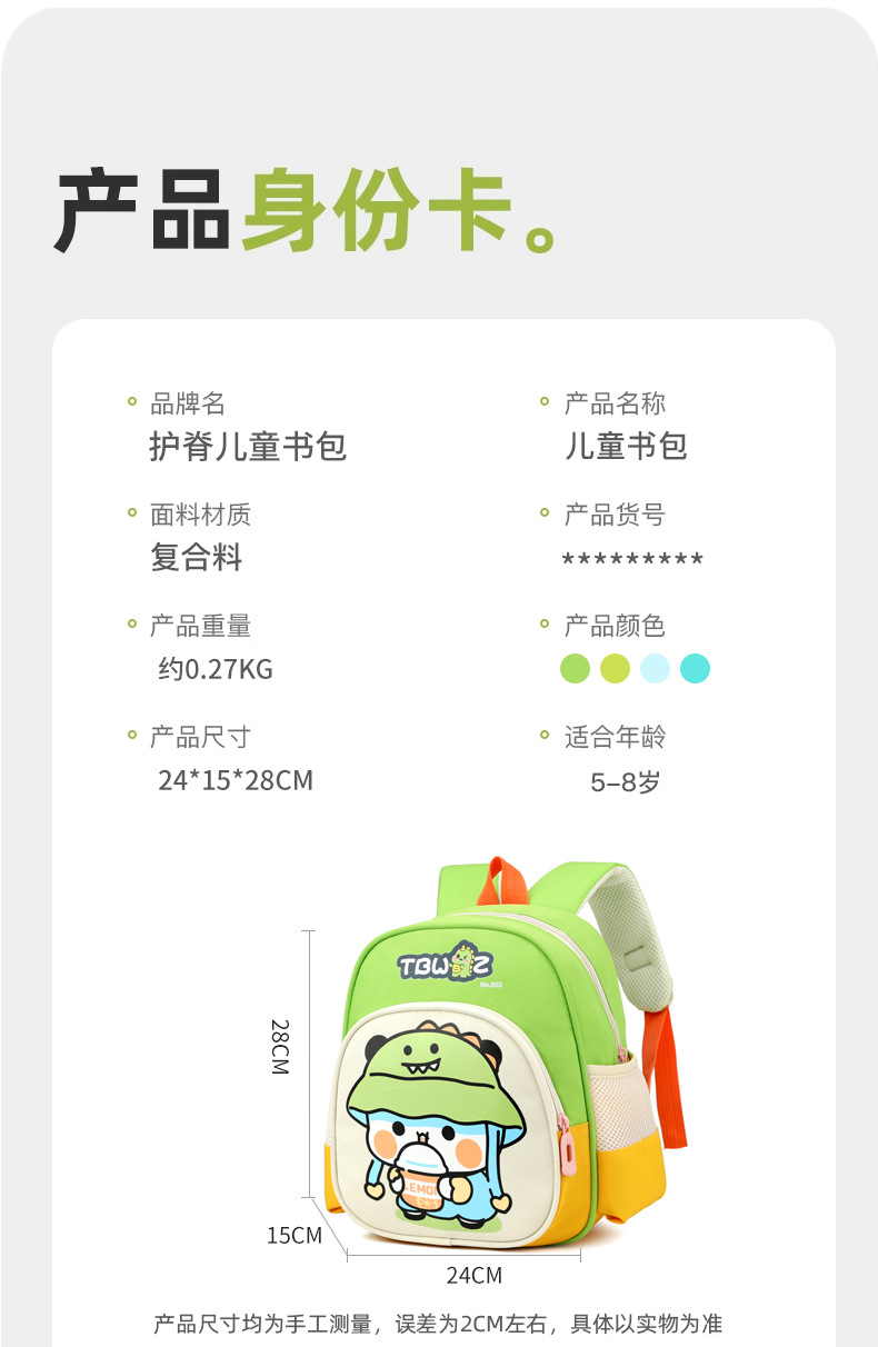 국경을 넘는 새로운 공룡 만화 작은 학교 가방 3-4 세 아기 유치원 유치원 어린이를위한 경량 배낭