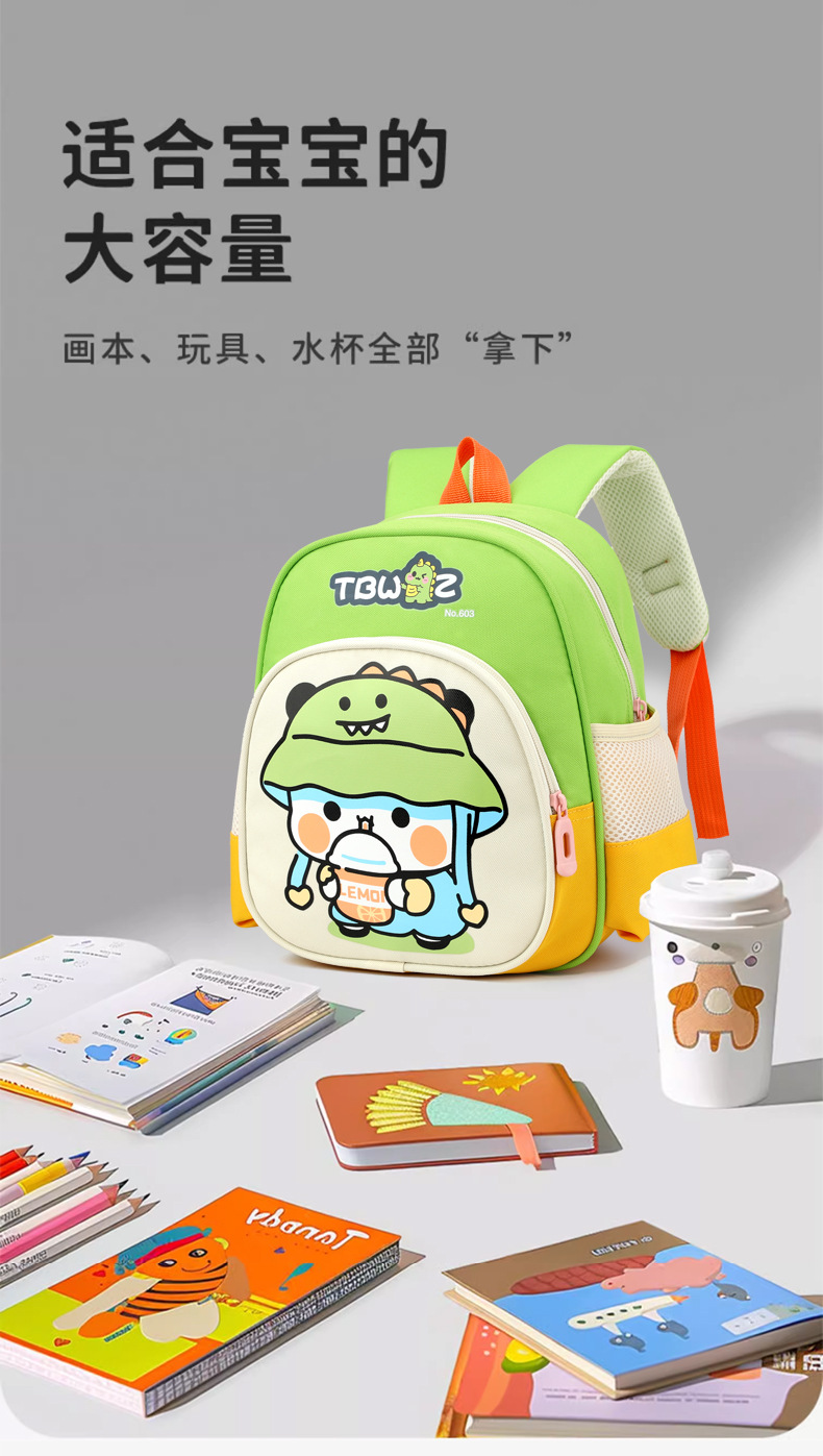 국경을 넘는 새로운 공룡 만화 작은 학교 가방 3-4 세 아기 유치원 유치원 어린이를위한 경량 배낭스토어 가기