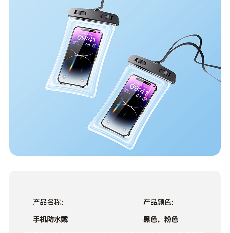 간단한 스타일 터치 스크린 수영 특수 휴대 전화 방수 가방 온천 투명 밀봉 된 가방 끈 교수형 목 수영 장비