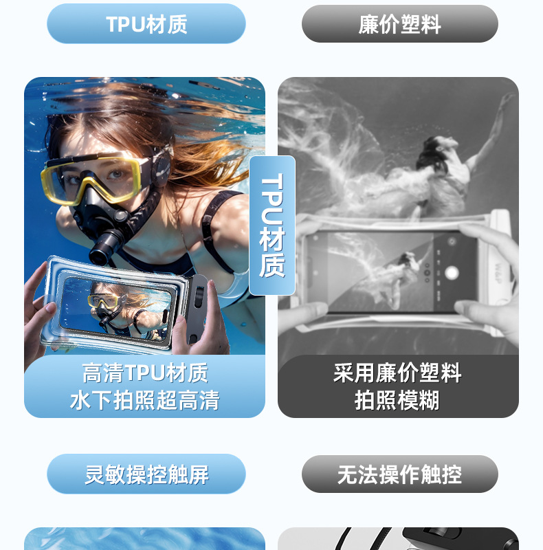 간단한 스타일 터치 스크린 수영 특수 휴대 전화 방수 가방 온천 투명 밀봉 된 가방 끈 교수형 목 수영 장비스토어 가기