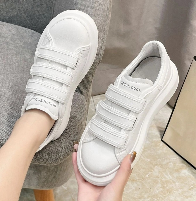 정품 가죽 2024 새로운 봄 올 매치 두꺼운 밑창 유행 흰색 신발 여성용 벨크로 캐주얼 미끄럼 방지 정품 가죽 운동화스토어 가기