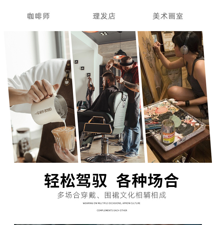 바리 스타 밀크 티 샵, 가정용 주방 앞치마 로고 인쇄 남성 및 여성 작업복 케이터링을위한 특수 허리스토어 가기