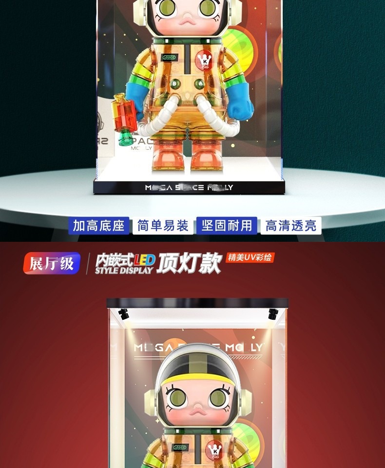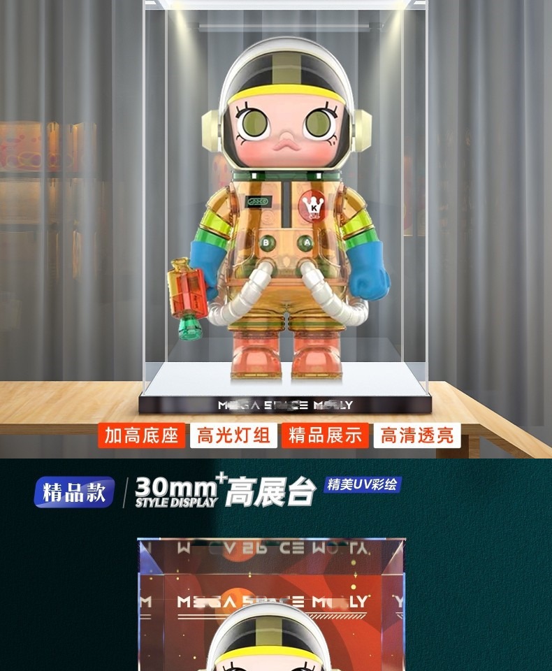 POPMART 버블 마트 공간 MOLLY 젤리 100% 400% 방진 저장 아크릴 디스플레이 박스