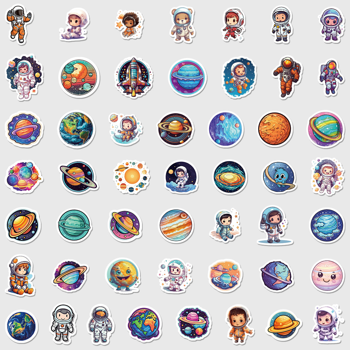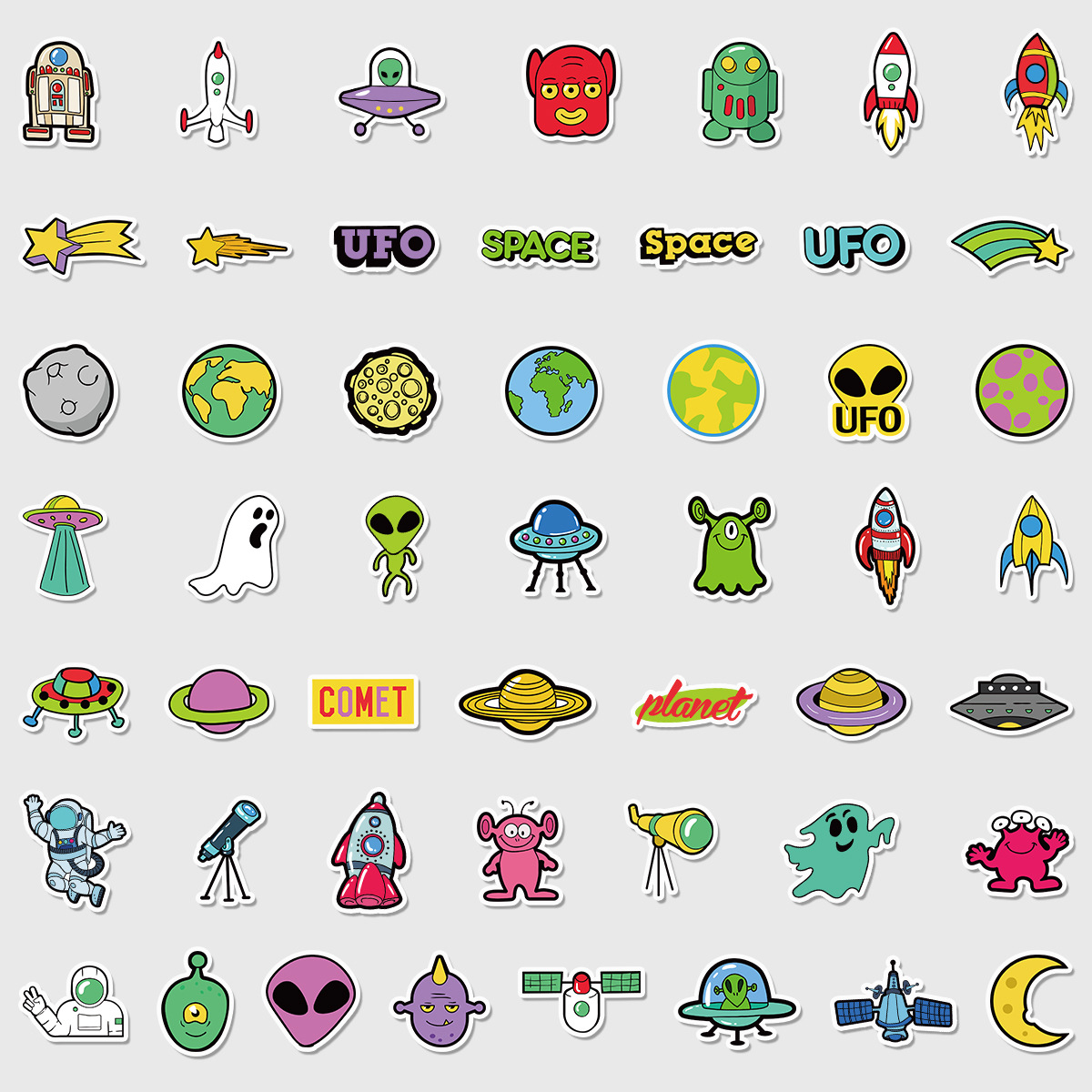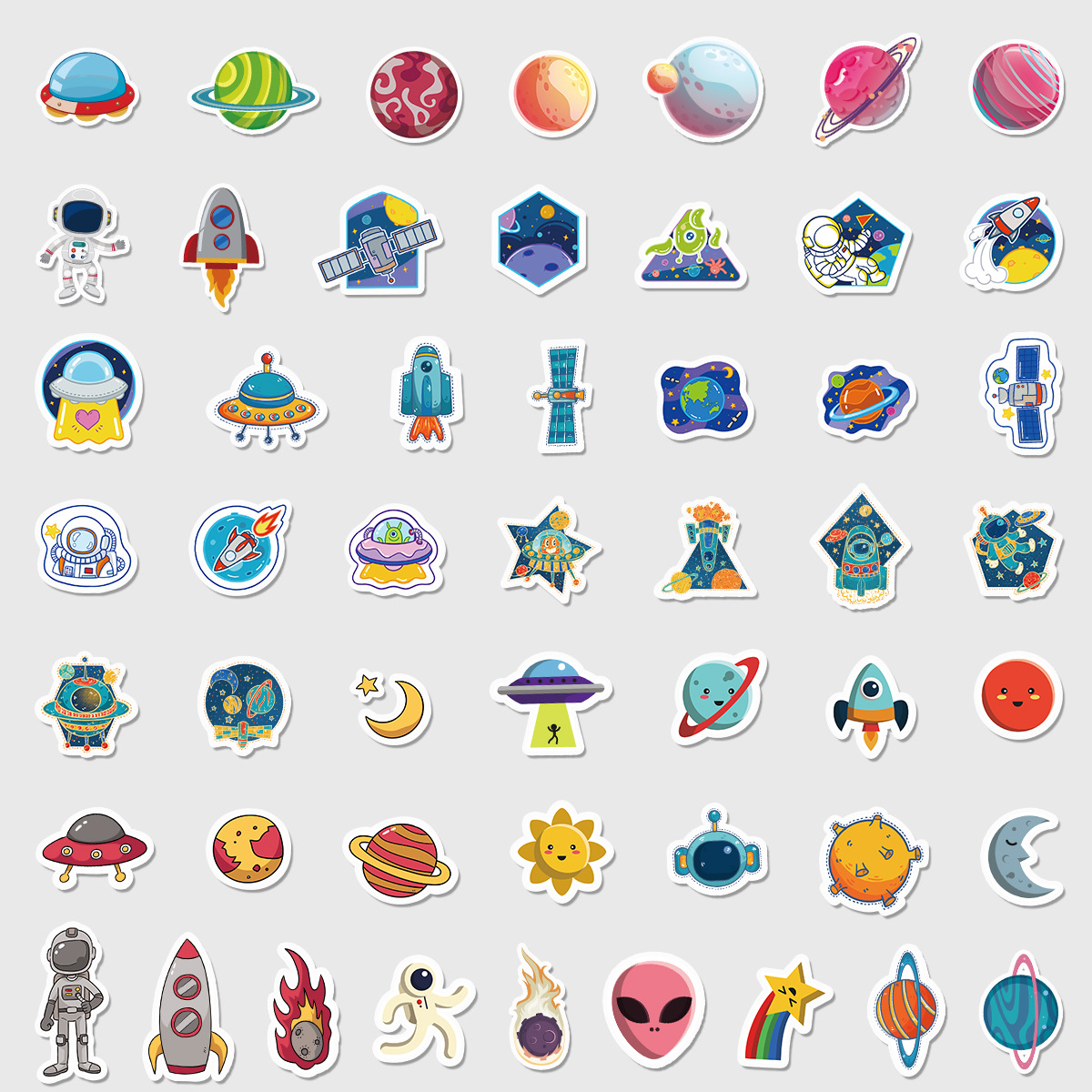 다양한 우주 행성 스티커 외계인 스티커 만화 우주 비행사 방수 스티커 DIY 장식 어린이 스티커