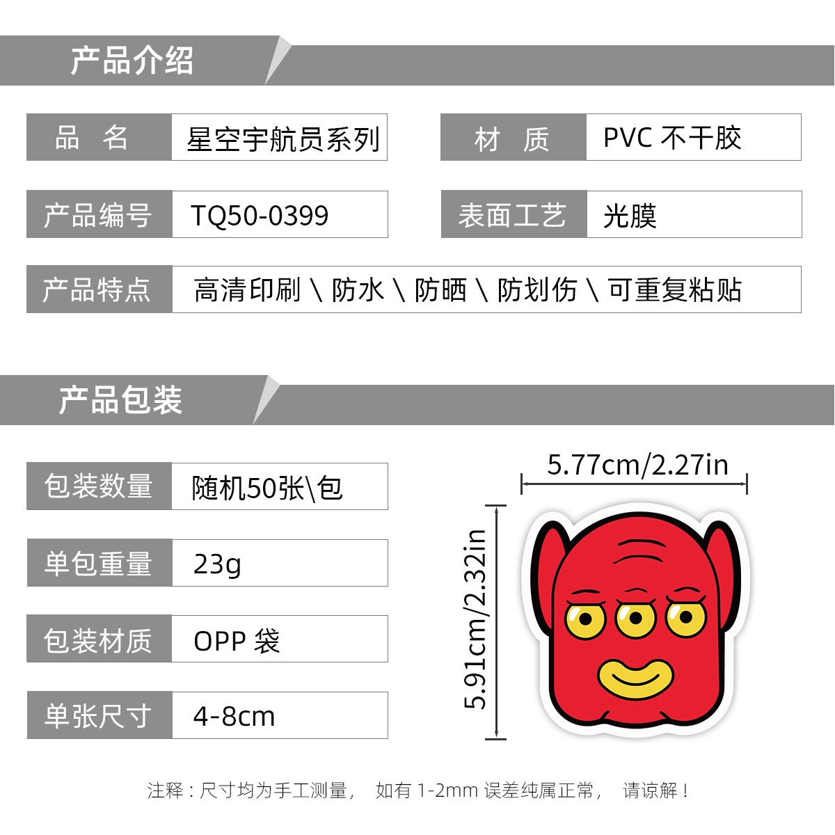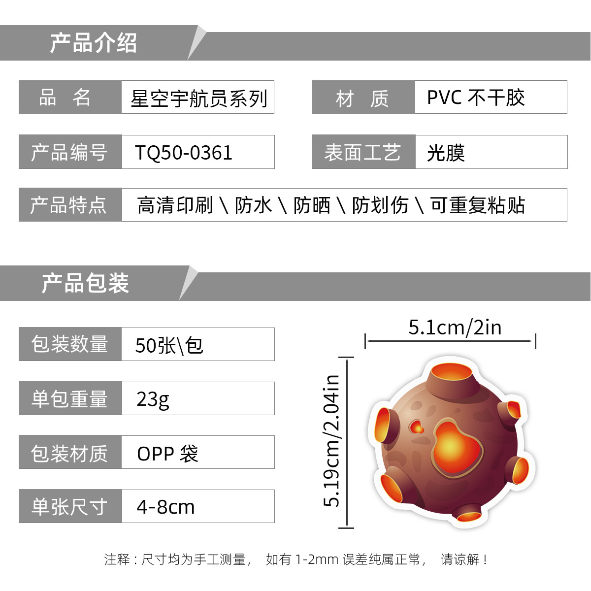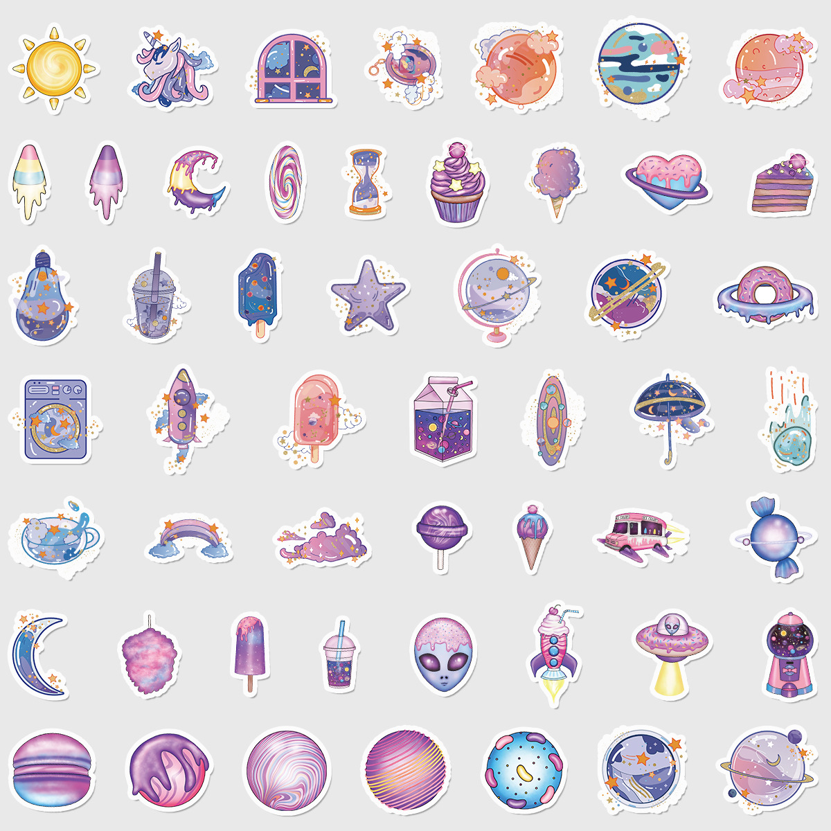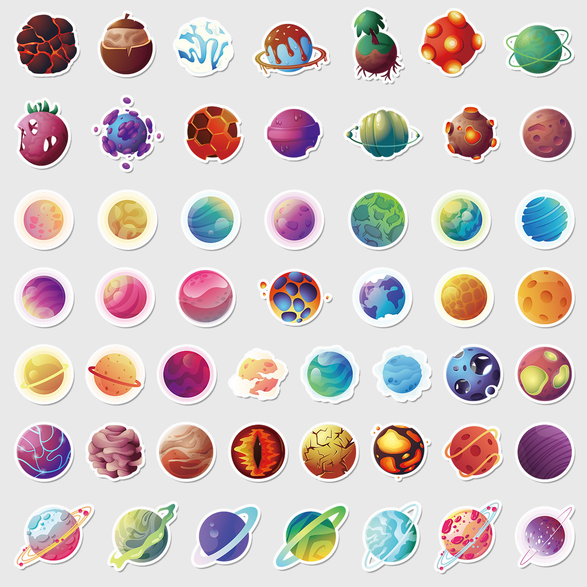 다양한 우주 행성 스티커 외계인 스티커 만화 우주 비행사 방수 스티커 DIY 장식 어린이 스티커