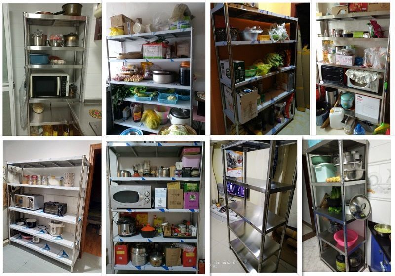 주방 스테인레스 스틸 두꺼운 스토리지 랙 바닥 4-5 층 스토리지 랙 다층 전자 레인지 선반