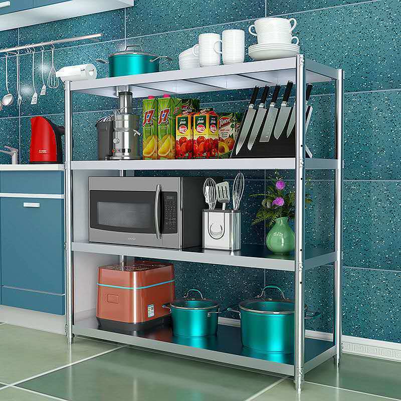 주방 스테인레스 스틸 두꺼운 스토리지 랙 바닥 4-5 층 스토리지 랙 다층 전자 레인지 선반스토어 가기