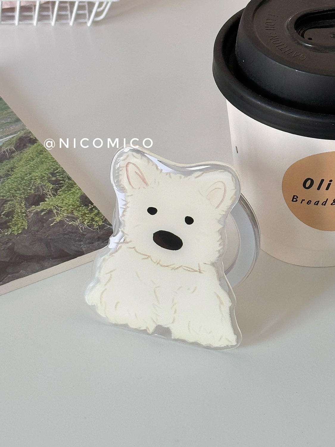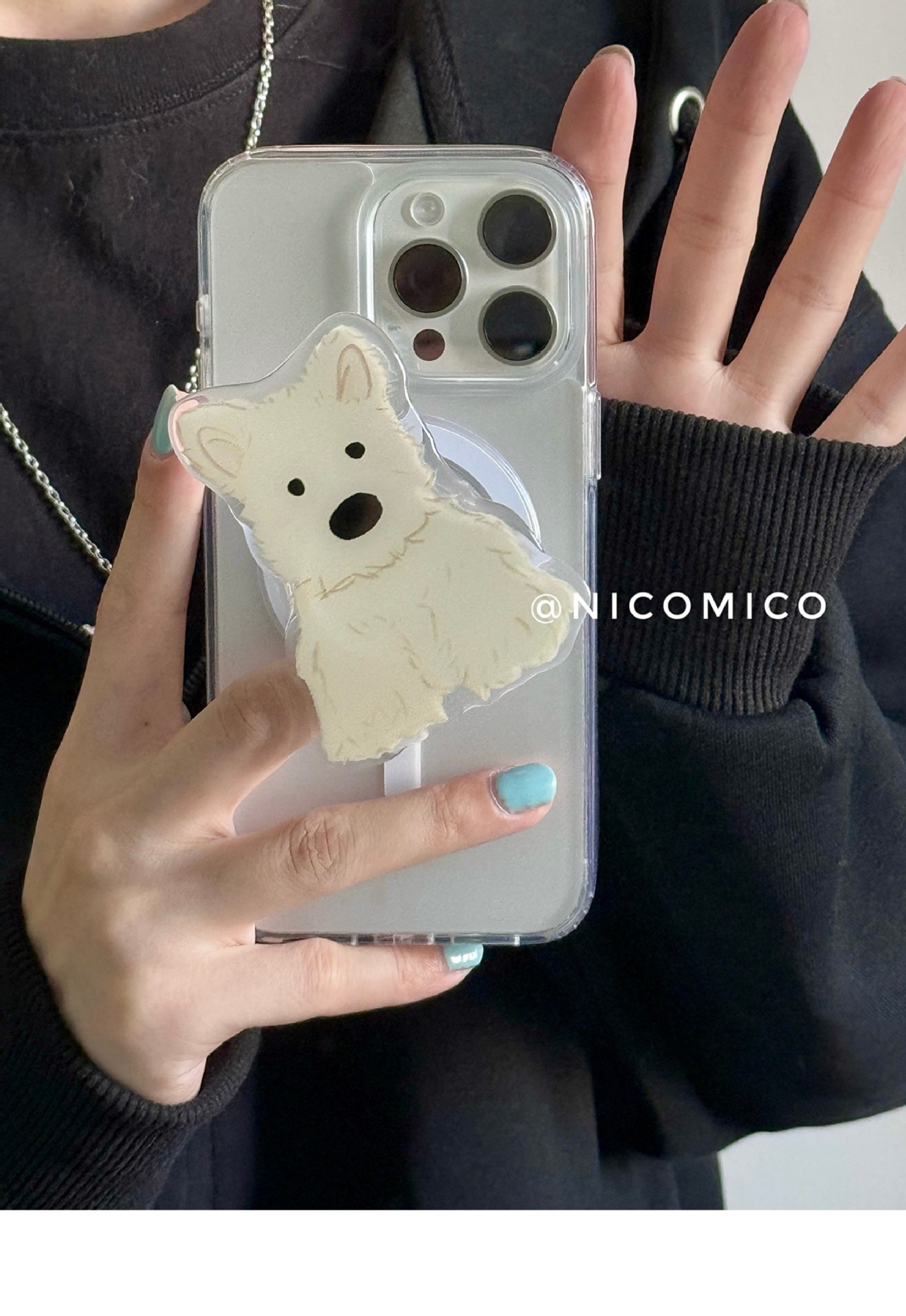 귀여운 개 서쪽 고원에 한국 Magsafe 자기 휴대 전화 에어백 브래킷 접이식 페이스트 유형스토어 가기