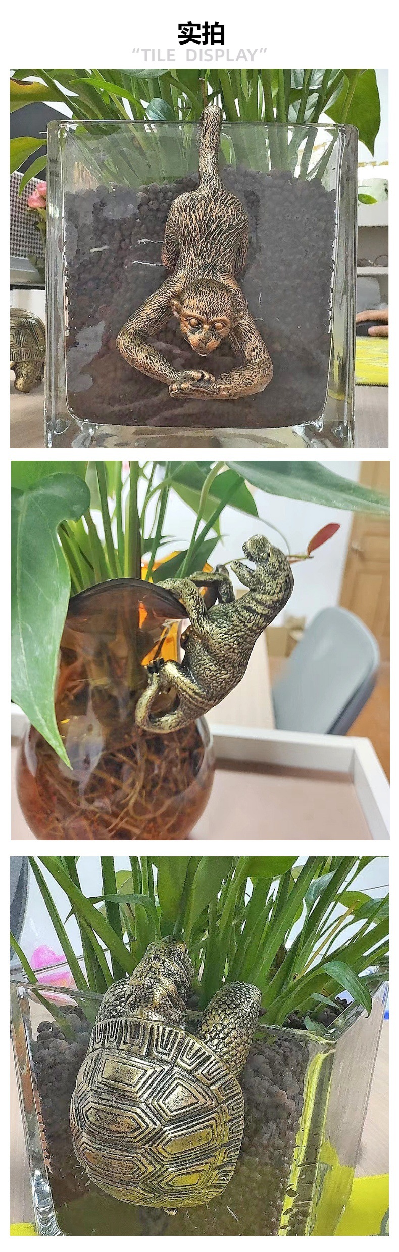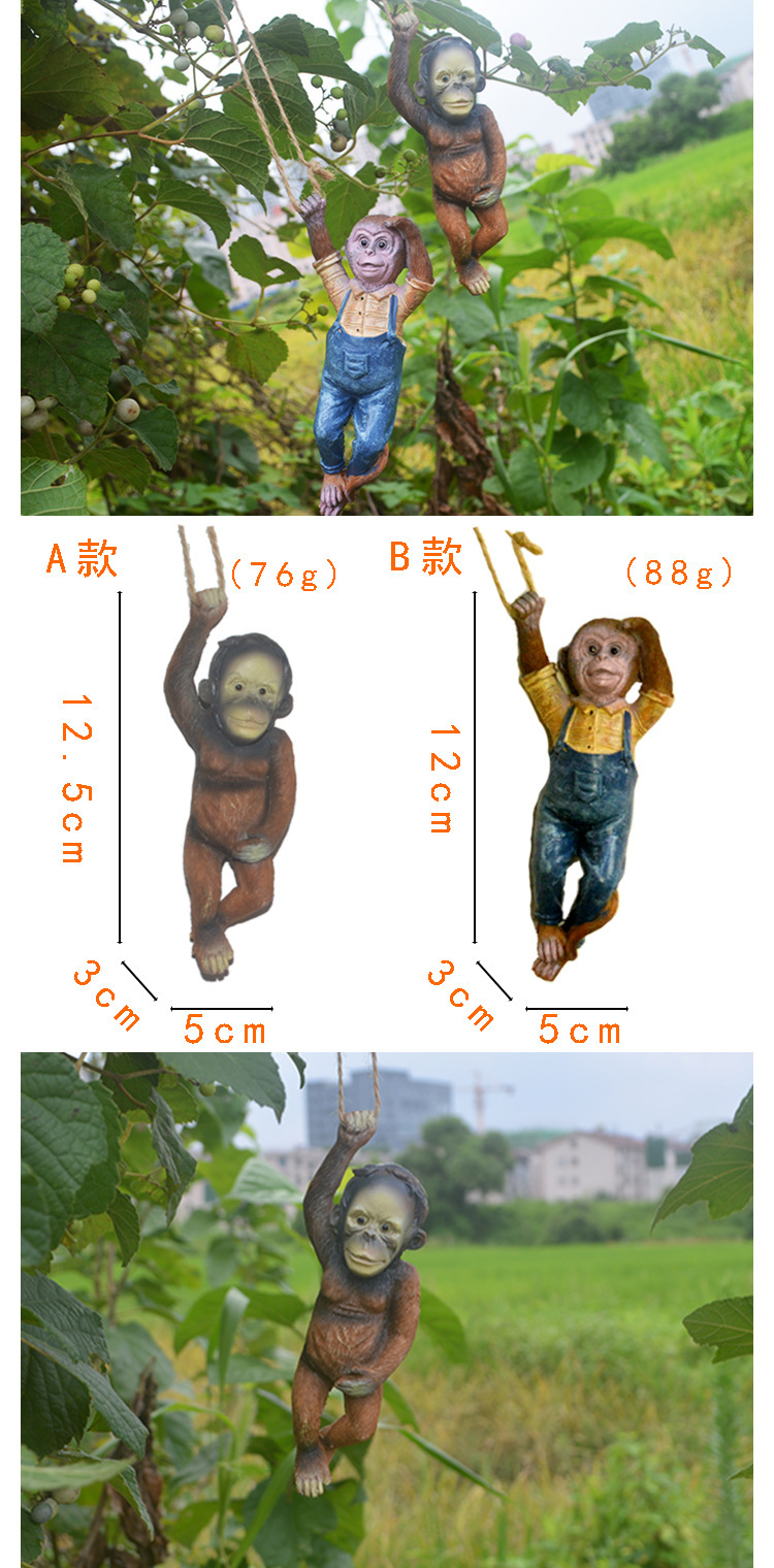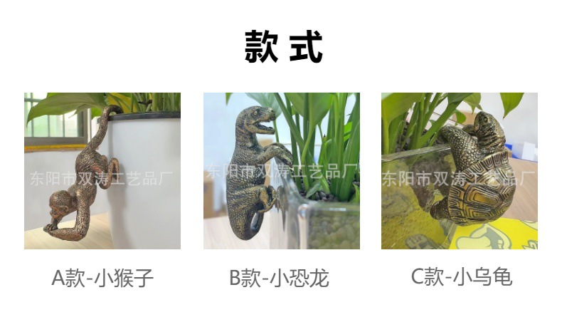 국경 간 작은 원숭이 교수형 동상 거북이 공룡 교수형 화분 장식 발코니 정원 정원 수지 공예스토어 가기