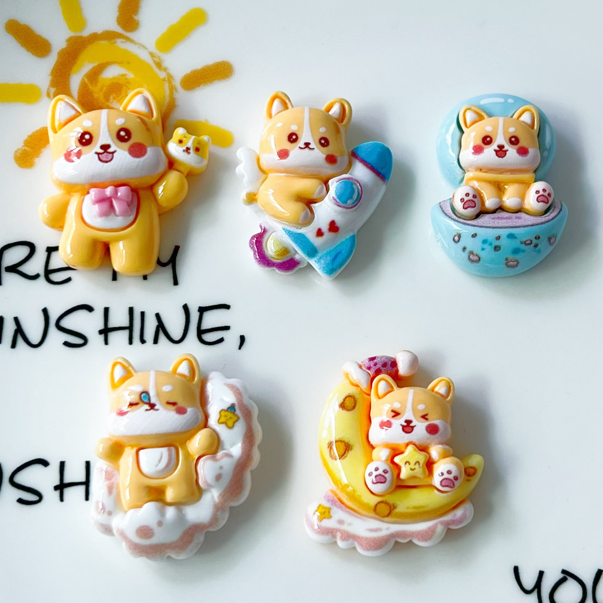 밝은 만화 달 별 로켓 귀여운 공간 개 머리핀 머리핀 헤어로프 잡아 클립 크림 접착제 수지 액세서리