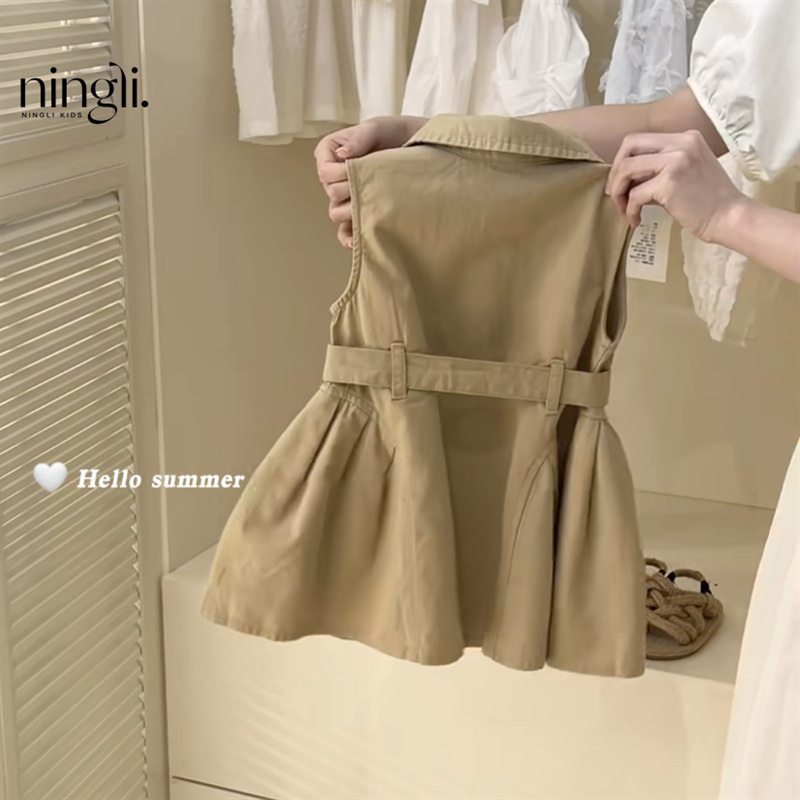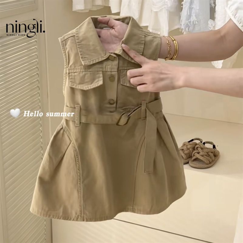 라임 한국 아동복 여름 새 여아 민소매 원피스 아기 패션 디자인 센스 작업복 스커트 스커트 스커트