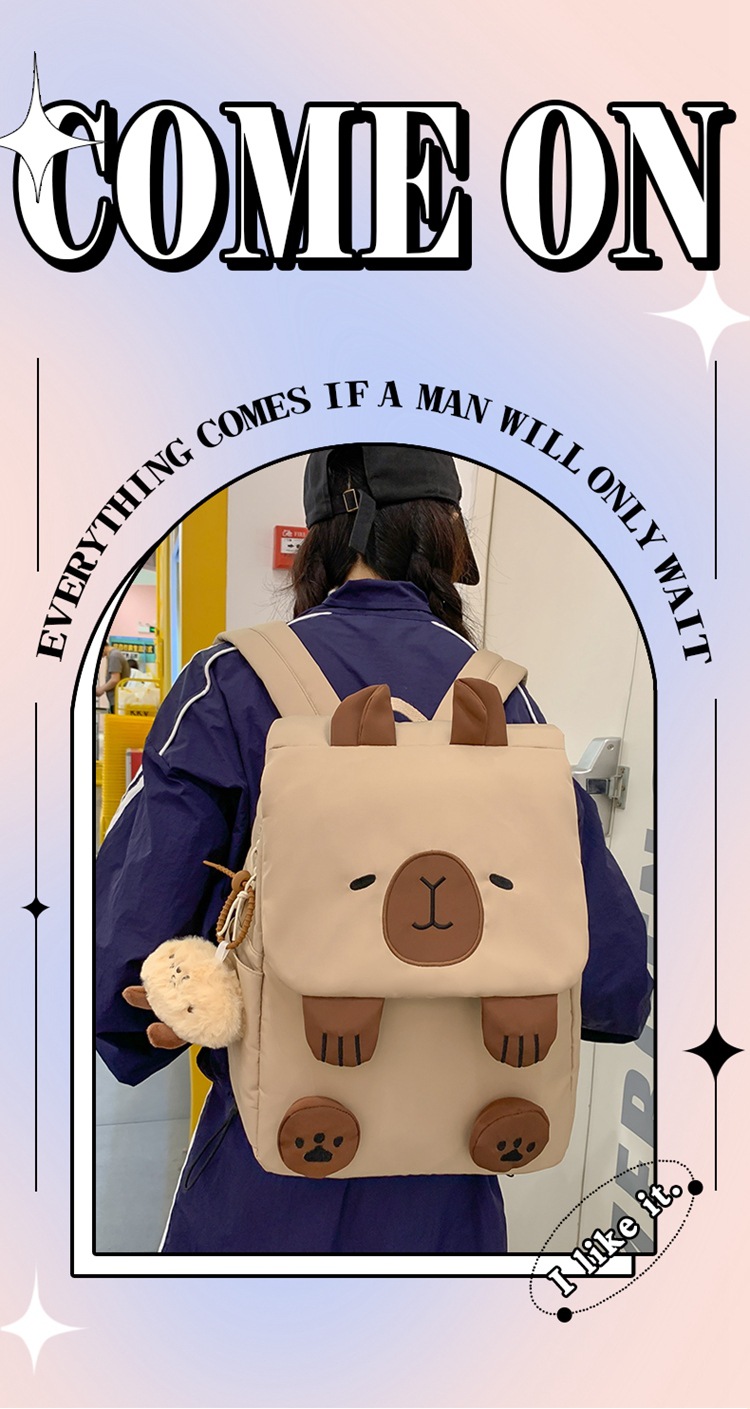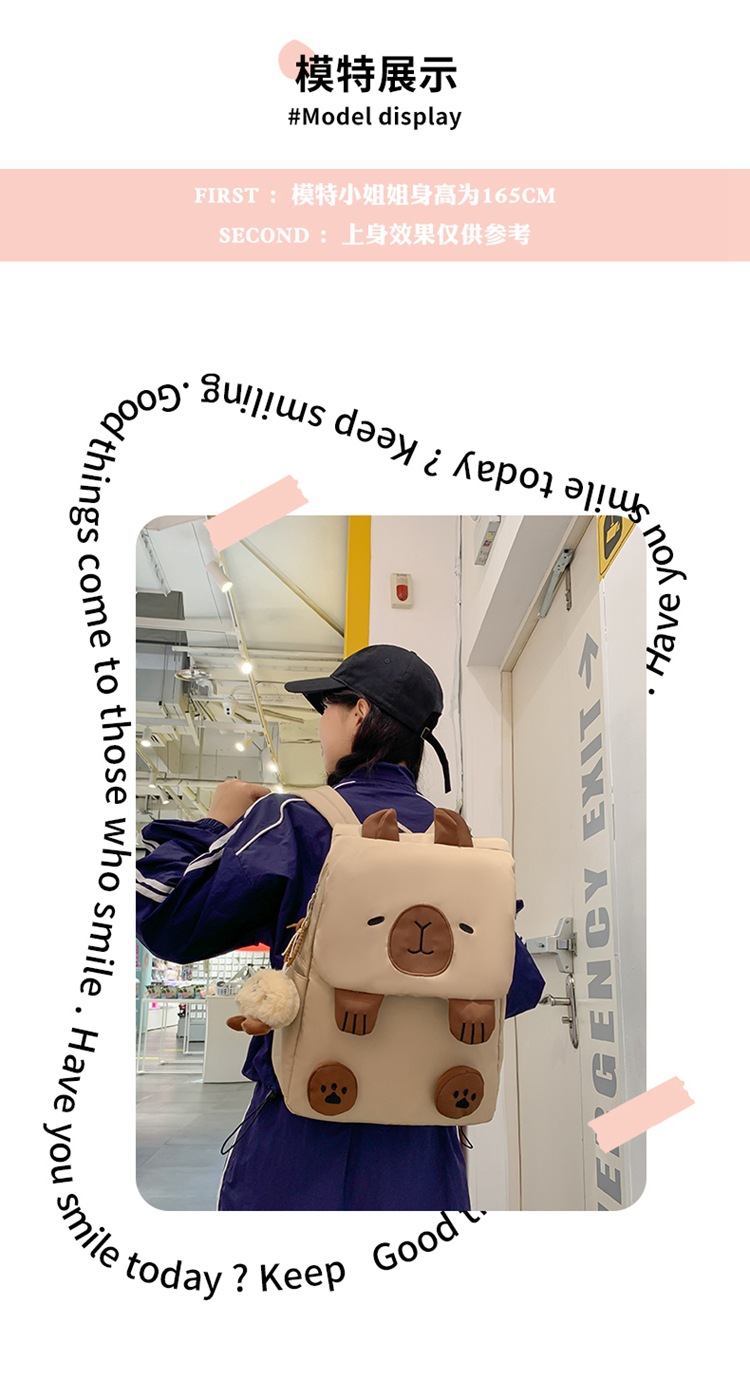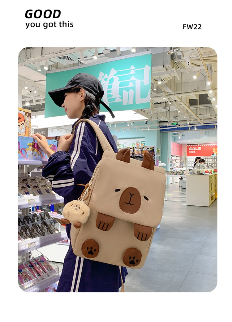 2024 귀여운 Carto Kapibala Capybara 배낭 주니어 고등학교 학생 스쿨 백 여성 못생긴 귀여운 대용량 배낭스토어 가기