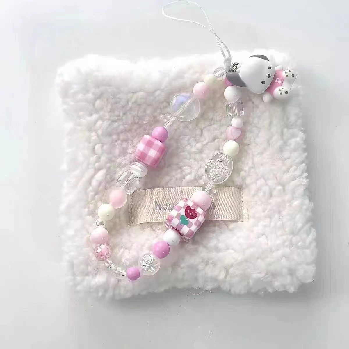 원래 핑크 튤립 parchia 개 봄과 여름 소녀 구슬 휴대 전화 체인 ccd 카메라 휴대용 휴대 전화 체인스토어 가기