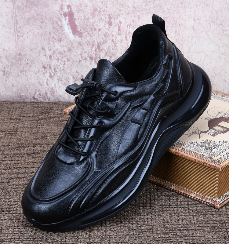 2025 가을 남성 신발 천연 가죽 소가죽 패션 트렌드 런닝화 두꺼운 밑창 에어쿠션 충격흡수 캐주얼 운동화