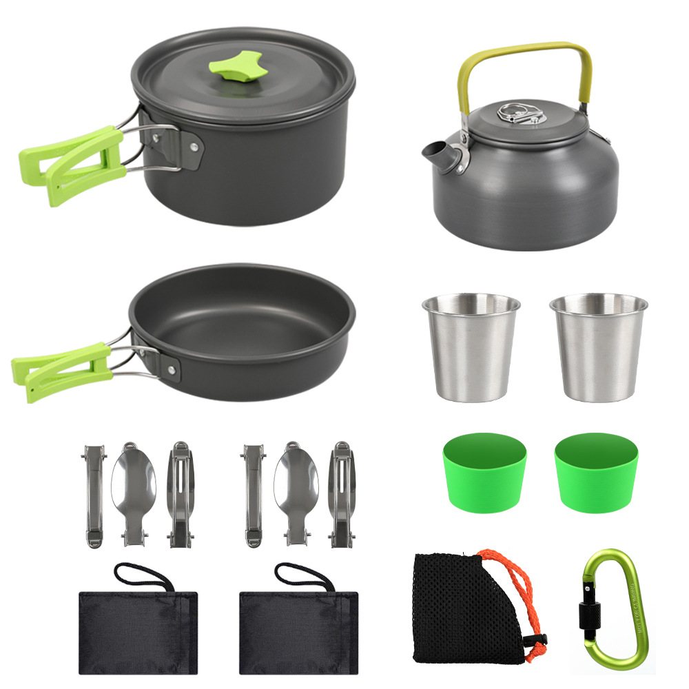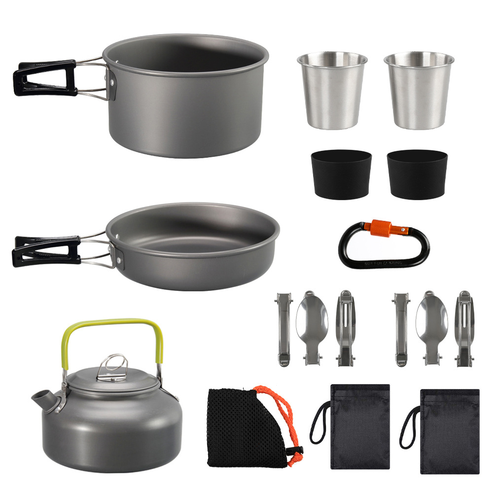 야외 세트 냄비 DS-308 세트 냄비 플러스 식기 가방 스테인레스 스틸 컵 등산 스냅 컵 세트 조합 휴대용 세트