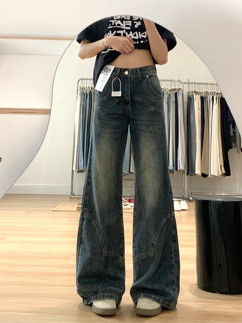 어린이를위한 약간의 바지 2024 새로운 높은 허리 슬림 핏 스키니 플레어 바지 빈티지 말굽 청바지스토어 가기