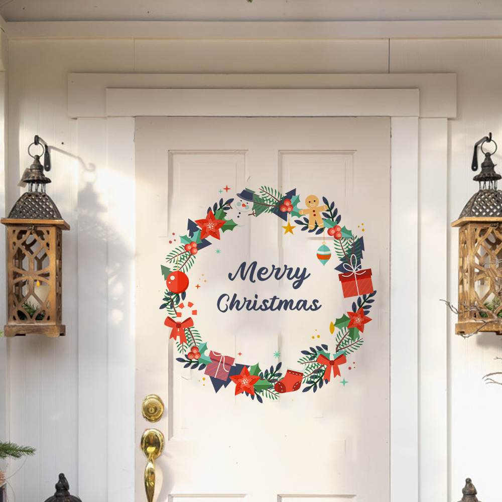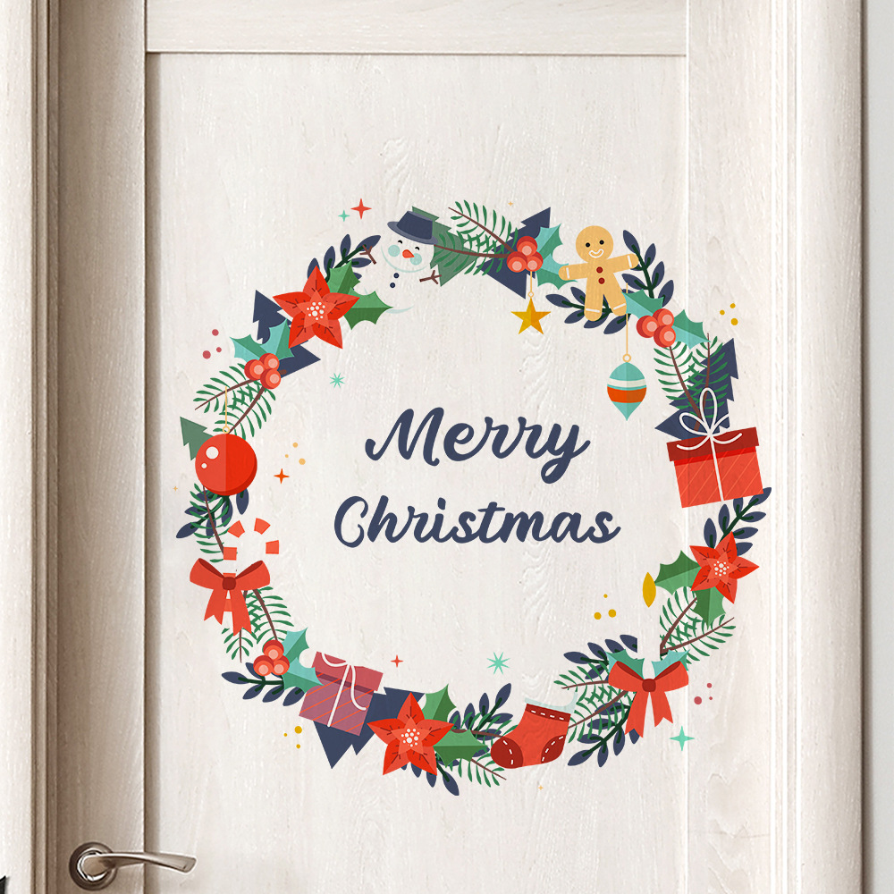 Yiyao DD3327 크리스마스 분위기 감각 양말 선물 편지 문 스티커 방 침실 문 다시 벽 장식 스티커
