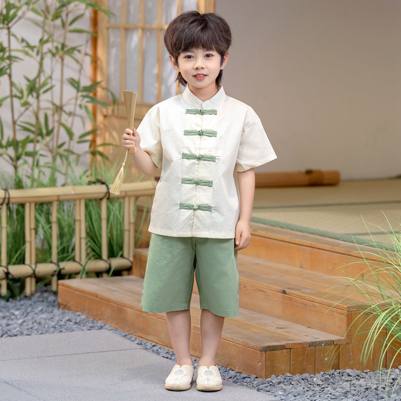 어린이 한푸 소년의 반팔 세트 유치원 아기의 여름 중국 스타일 고대 원피스 공연 원피스 어린 소녀의 당나라 원피스
