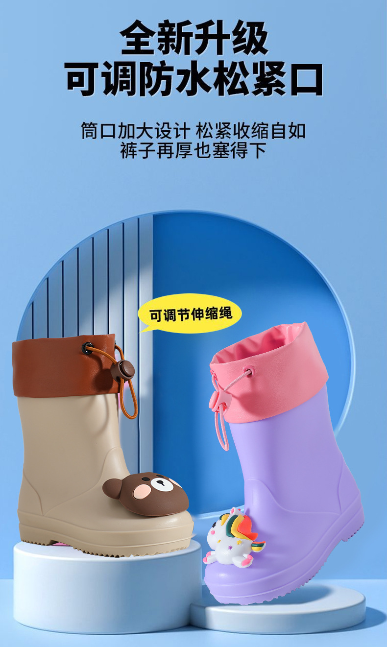 새로운 어린이 비 부츠 경량 편안한 미끄럼 방지 소년과 소녀 아기 학생 고무 부츠 장화 여자 방수 신발