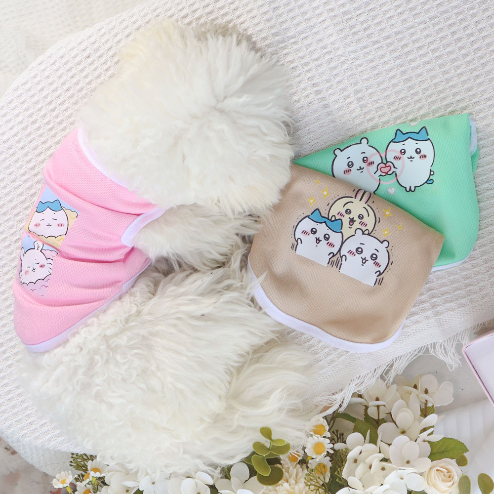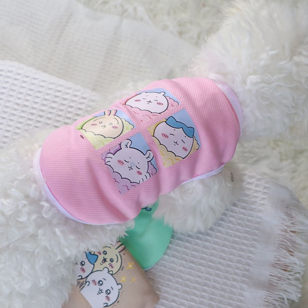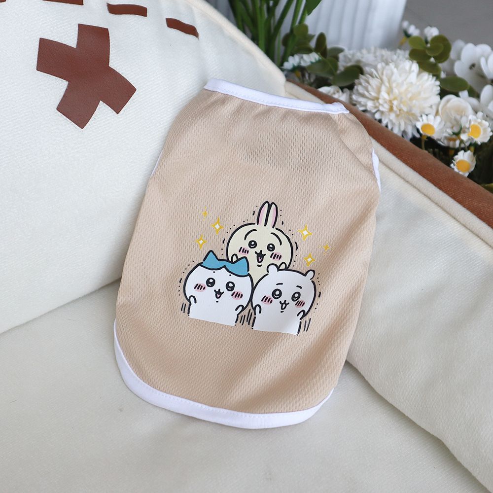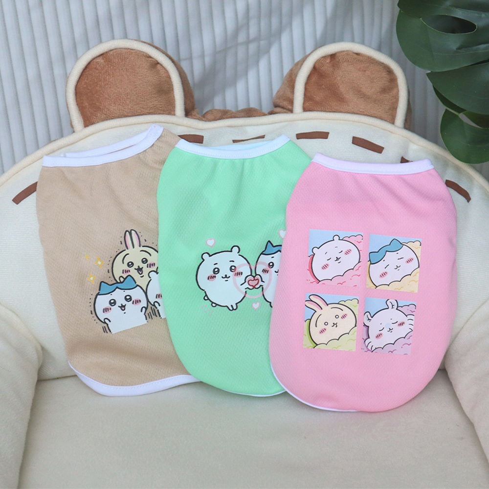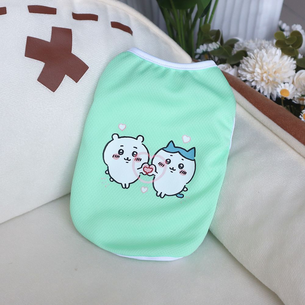 봄과 여름 얇은 애완 동물 조끼 신선한 통기성 Jiyka 와우 인쇄 조끼 캔디 컬러 귀여운 풀오버 옷스토어 가기