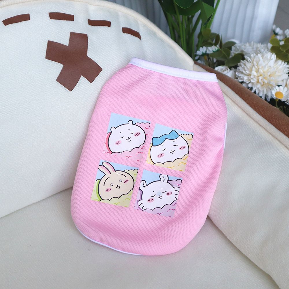 봄과 여름 얇은 애완 동물 조끼 신선한 통기성 Jiyka 와우 인쇄 조끼 캔디 컬러 귀여운 풀오버 옷
