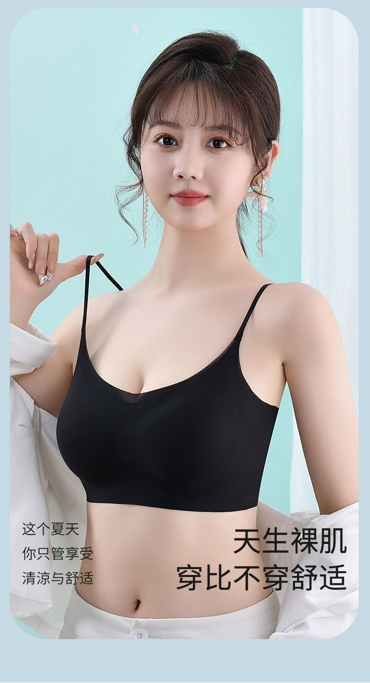 여성용 무봉제 브라, 아름다운 등라인 브라, 작은 가슴을 모아주는 브라, 와이어 없는 탱크탑 스타일 여름 브라, 가슴을 감싸는 스타일, 순수한 매력 스타일
