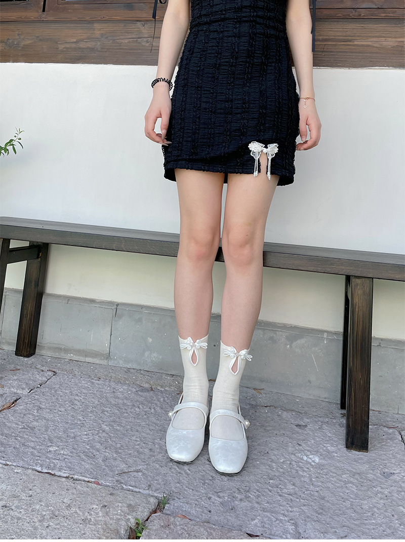 새로운 중국 스타일 국가 패션 마카롱 컬러 프론트 오프닝 옥 토끼 버클 양말 컬러 매칭 디자인 짧은 양말 봄과 여름 얇은스토어 가기