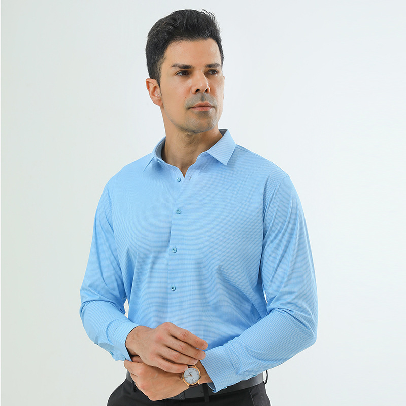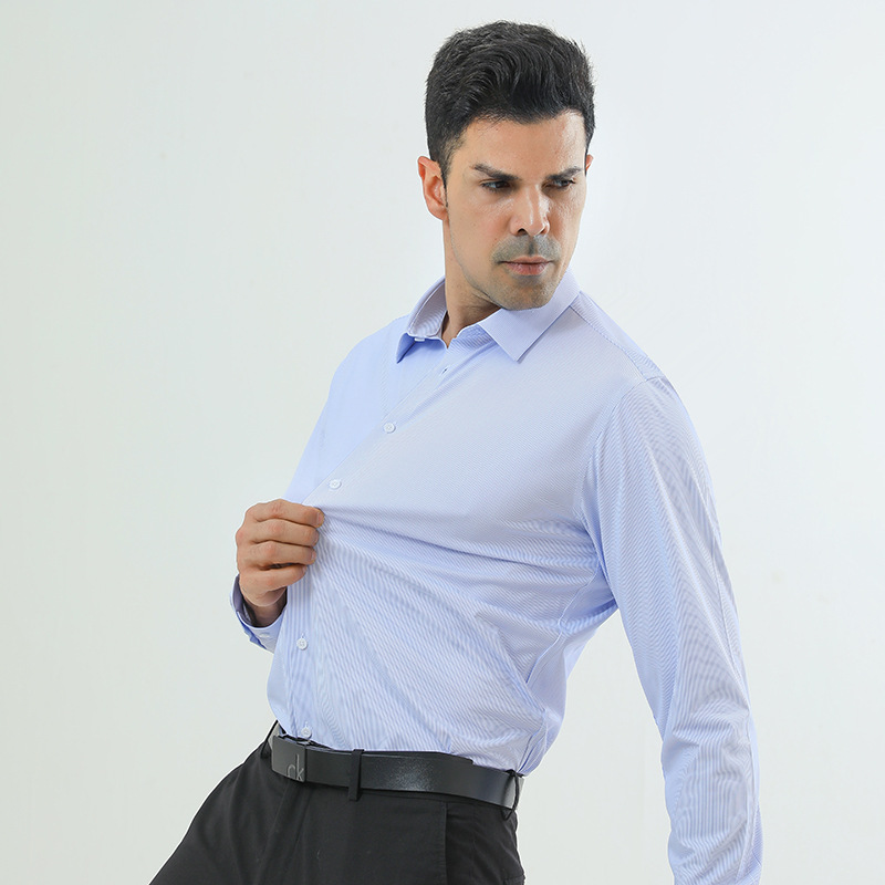 빠른 건조 남성용 긴팔 셔츠 슬림핏 비 다림질 주름 방지 쉬운 청소 비즈니스 전문 캐주얼 작업복 남성용 셔츠스토어 가기