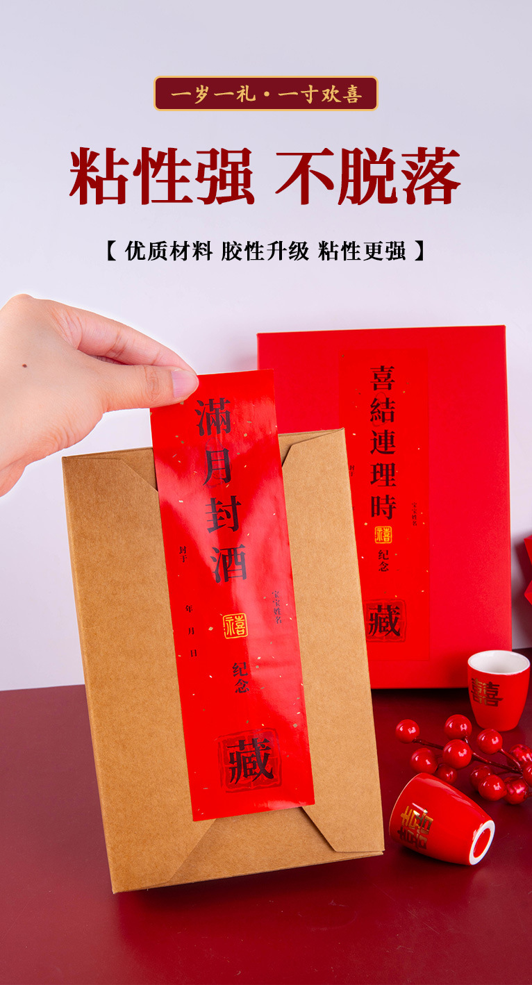 베이비 캐치 위크 소품 봉인 와인 스티커 보름달 백일 오래된 물개 와인 숨겨진 라벨 캐치 주간 연회 기념 씰 스티커
