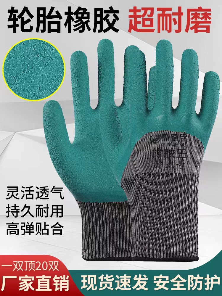 타이어 고무 장갑 나일론 라텍스 담그는 미끄럼 방지 주름 통기성 내마모성 보호 노동 장갑 제조 업체 도매스토어 가기