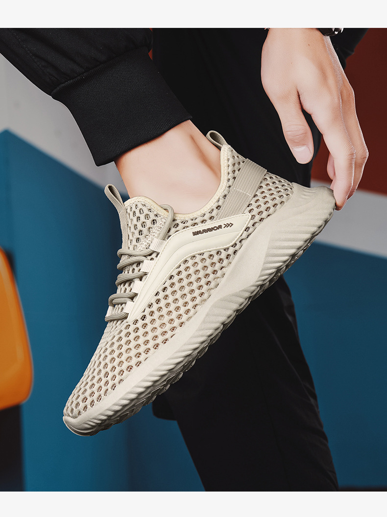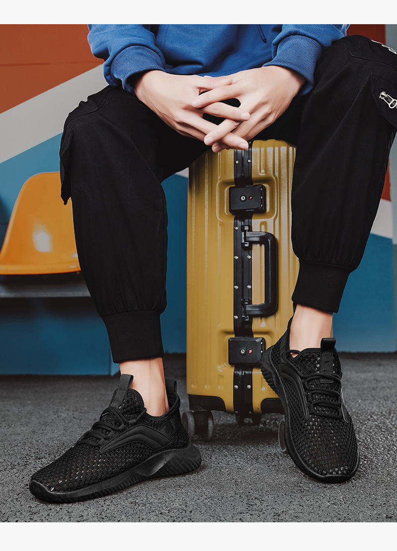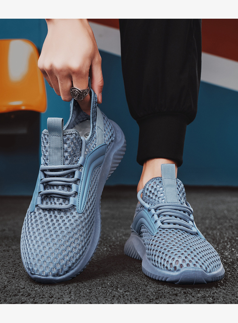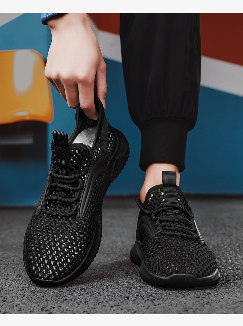 Huili 남성 신발 여름 통기성 얇은 중공 메쉬 신발 야외 구멍 추적 신발 대형 메쉬 캐주얼 스포츠 트렌디 신발스토어 가기