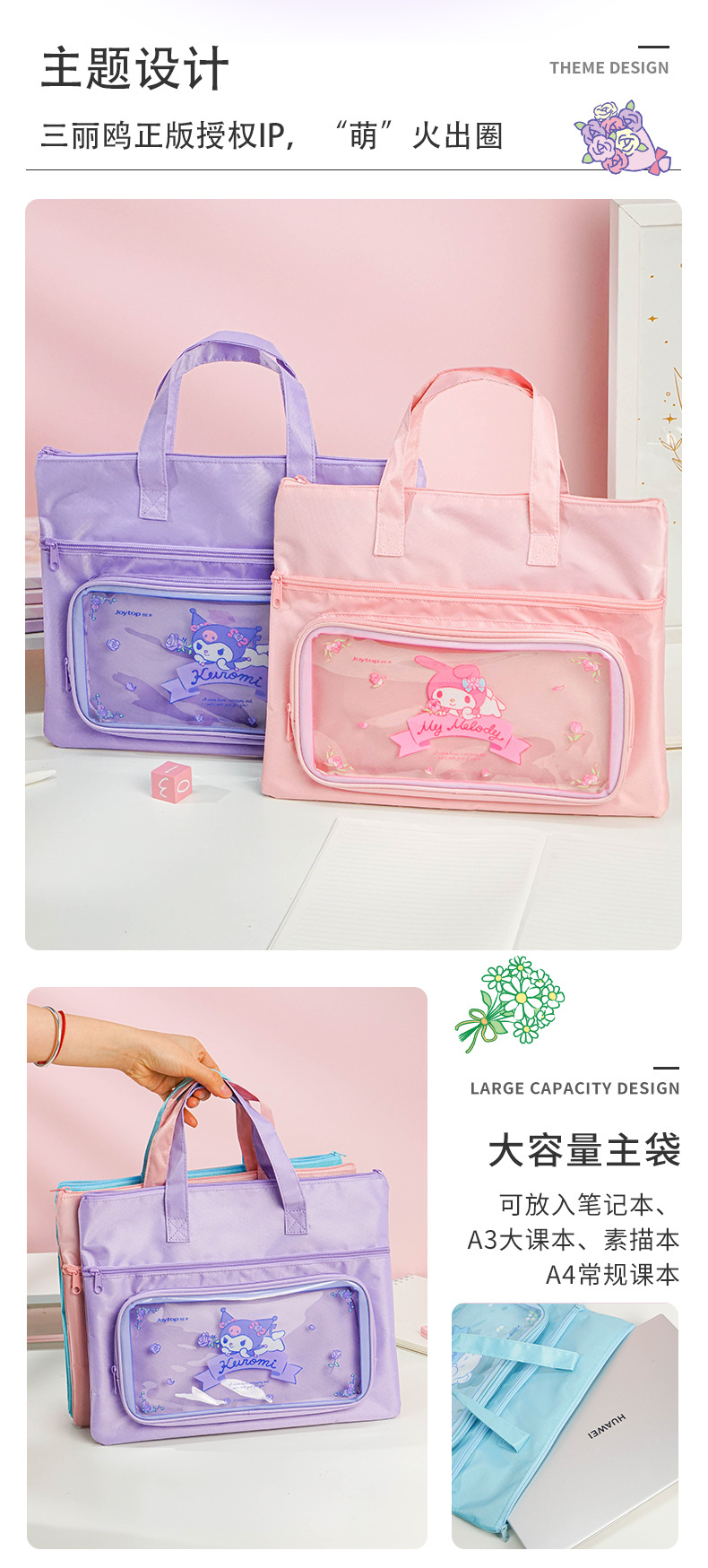 산리오 초등학교 학생 과외 가방 A4 어린이 휴대용 책 가방 소녀 소년 과외 수업 가방 캔버스 가방