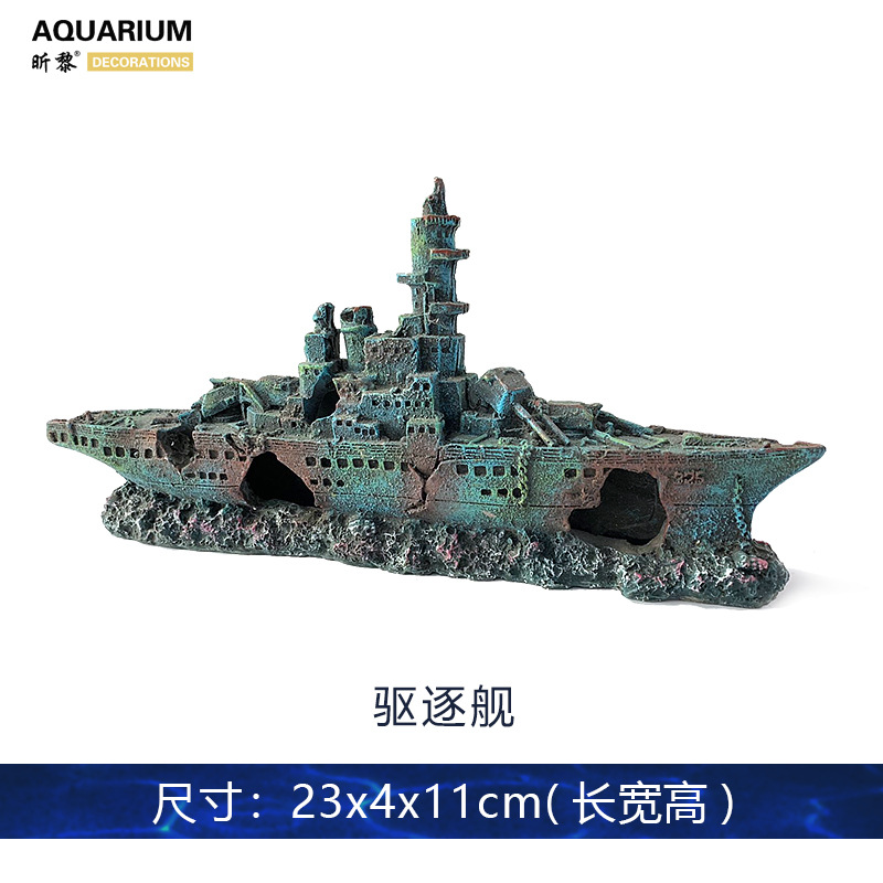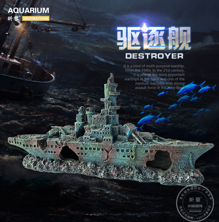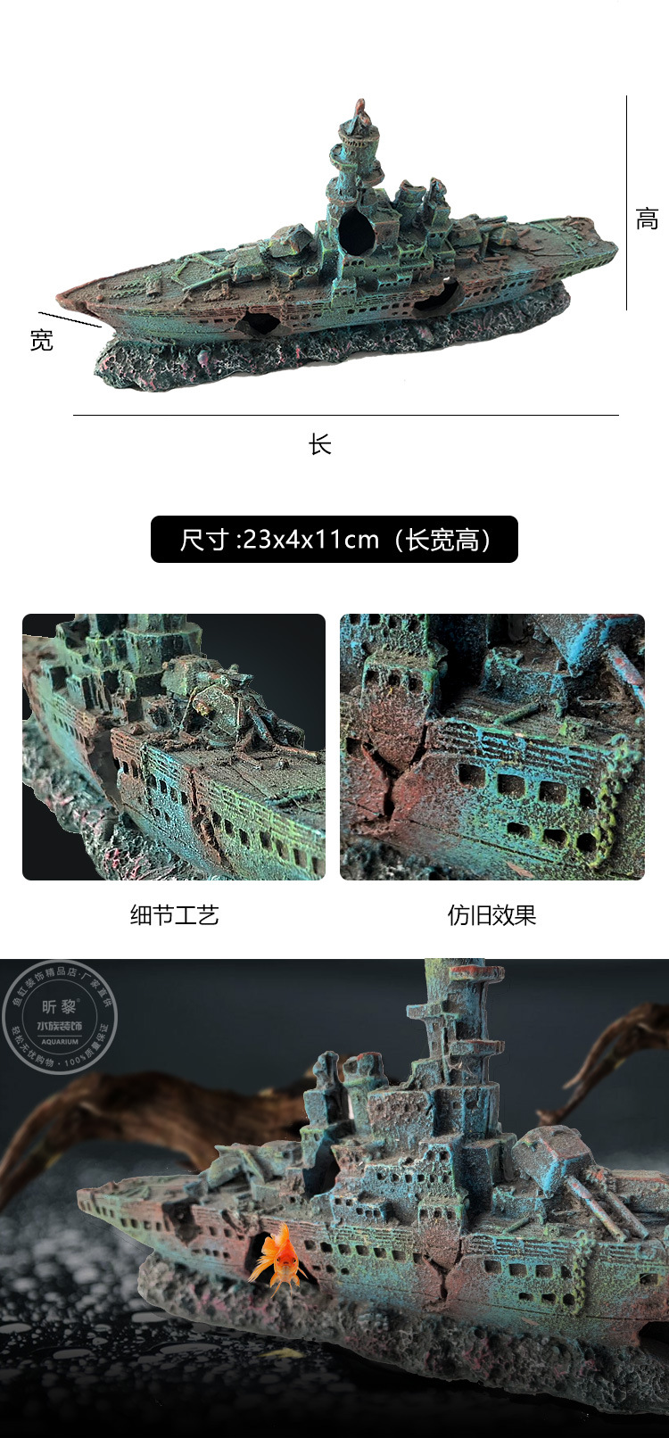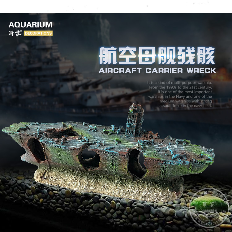 물고기 탱크 풍경 장식 항공기 대포 전쟁 잔해 항공기 캐리어 군함 탈출 구멍 장식 수족관 수지 기술스토어 가기