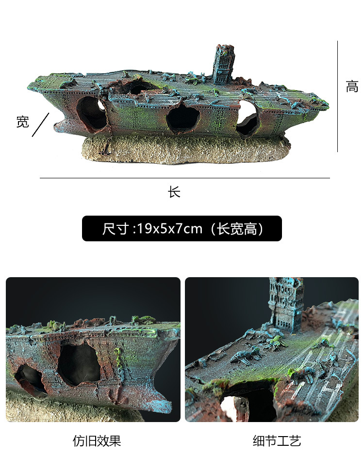 물고기 탱크 풍경 장식 항공기 대포 전쟁 잔해 항공기 캐리어 군함 탈출 구멍 장식 수족관 수지 기술