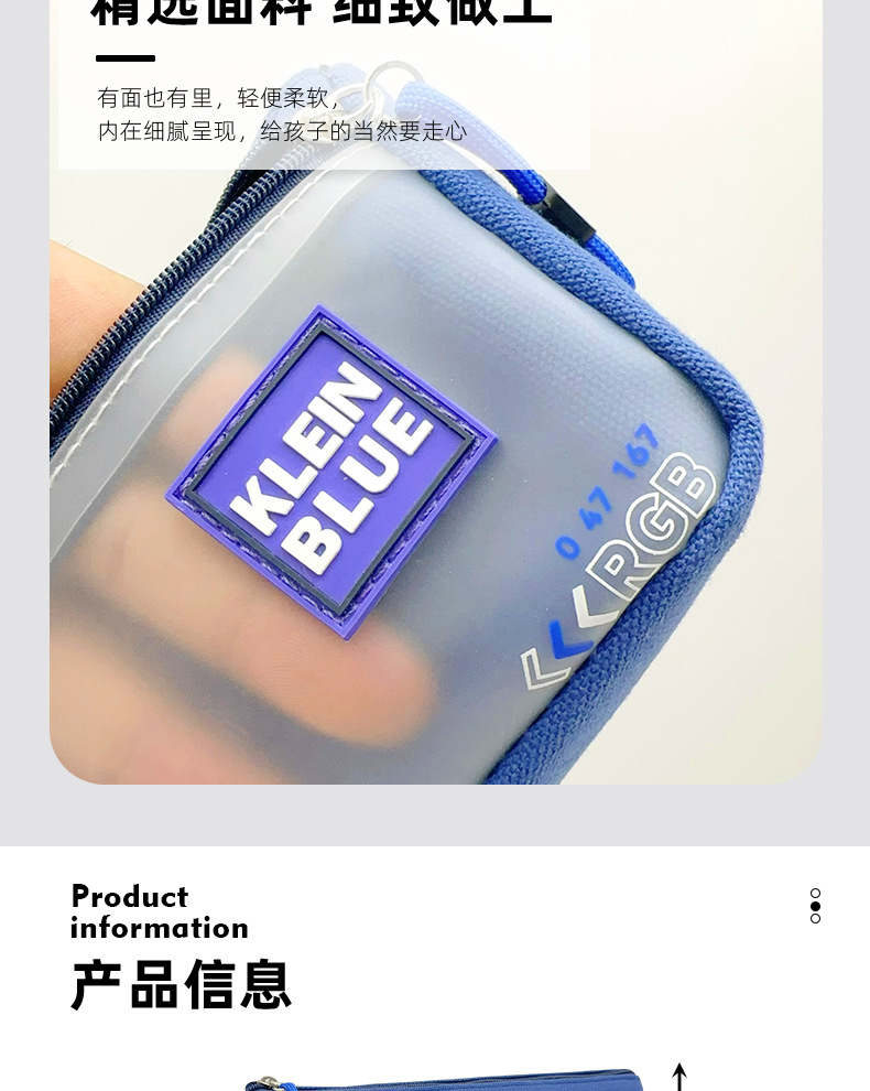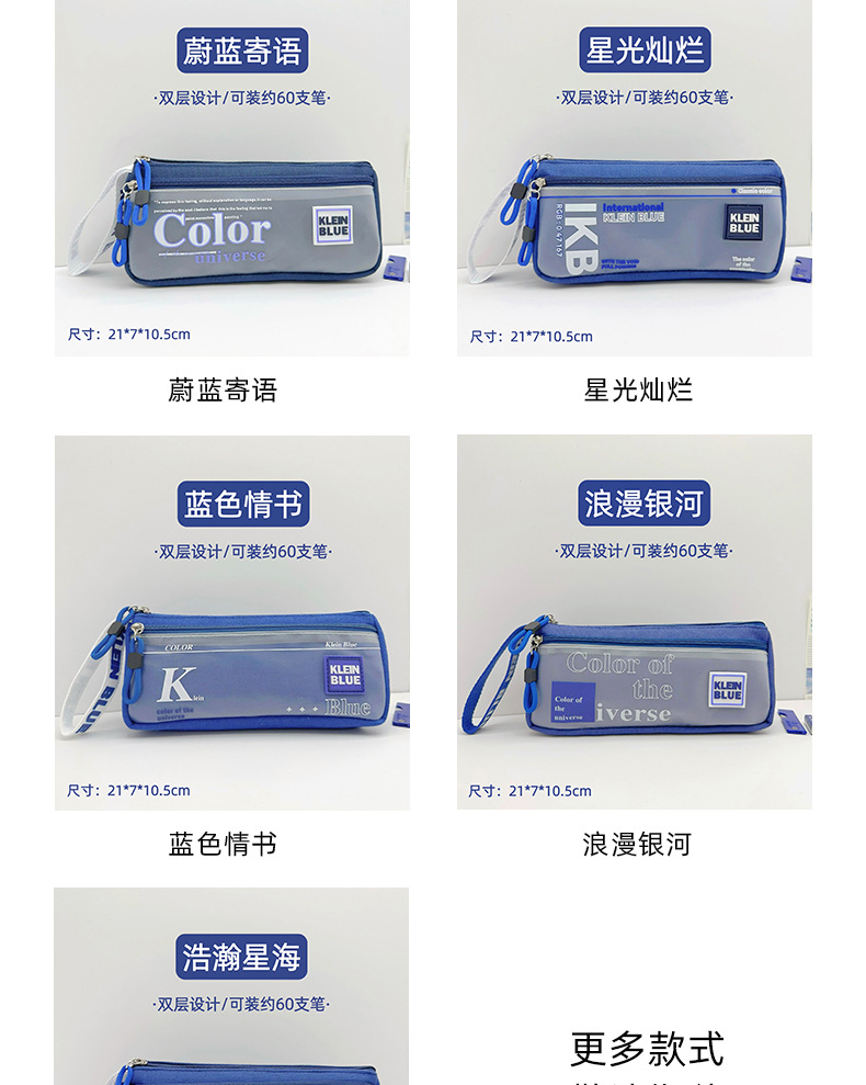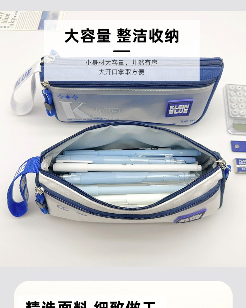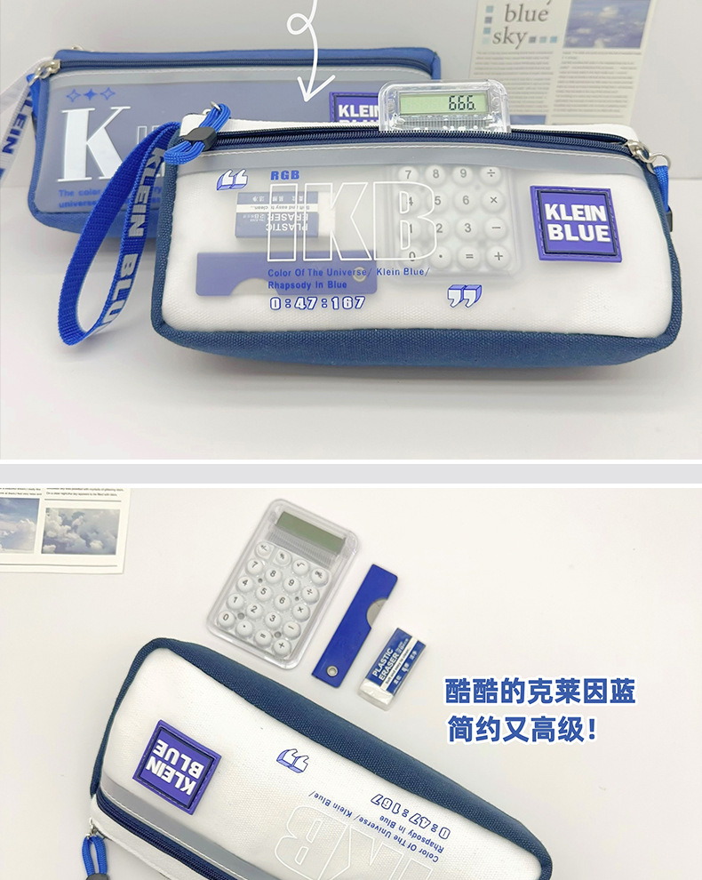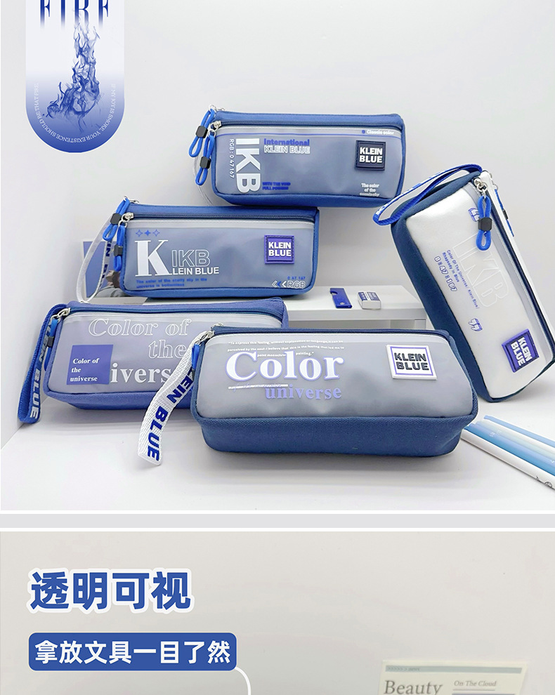 클라인 블루 연필 가방 소년 투명 대용량 얼룩 방지 문구 가방 초등학생을위한 고가 문구 상자