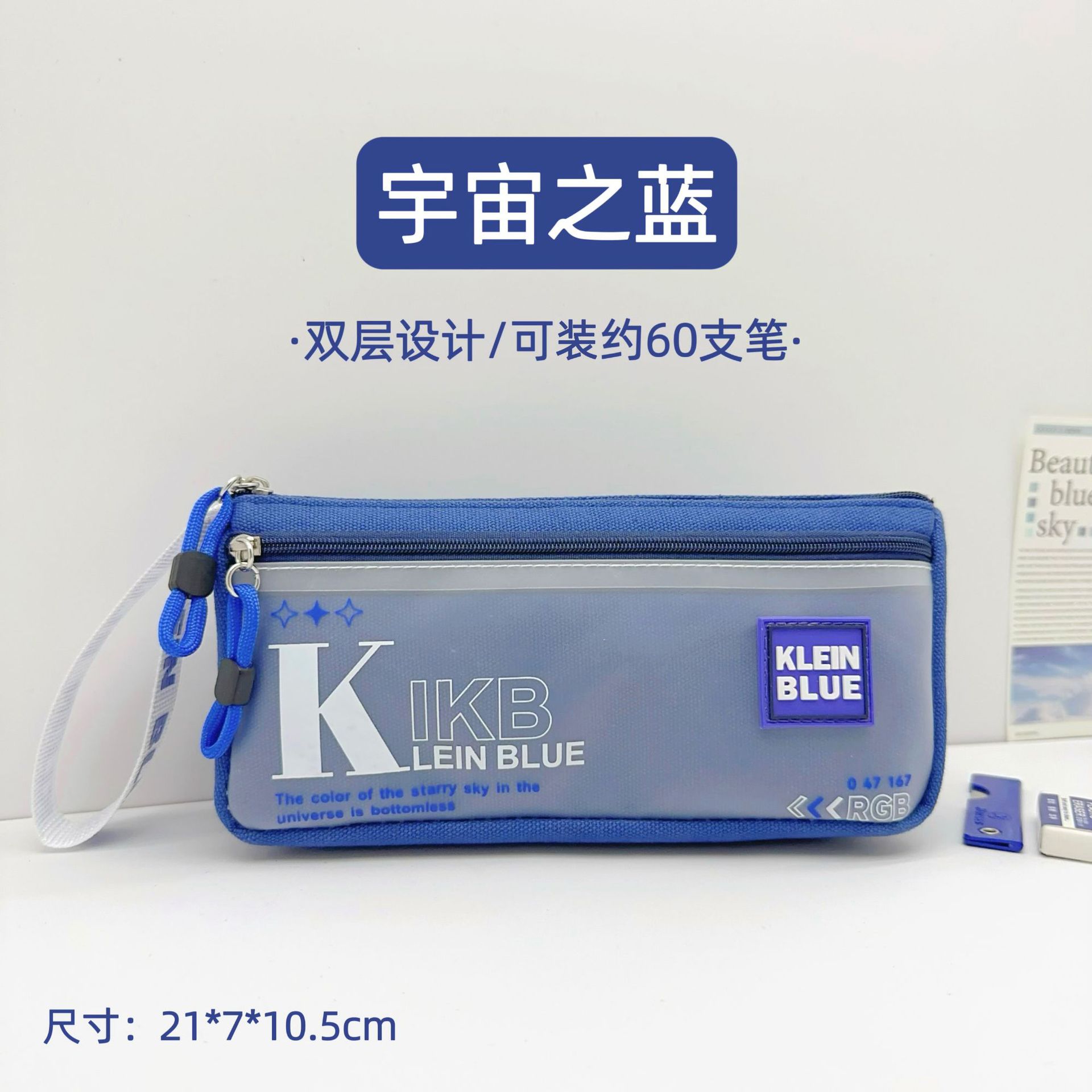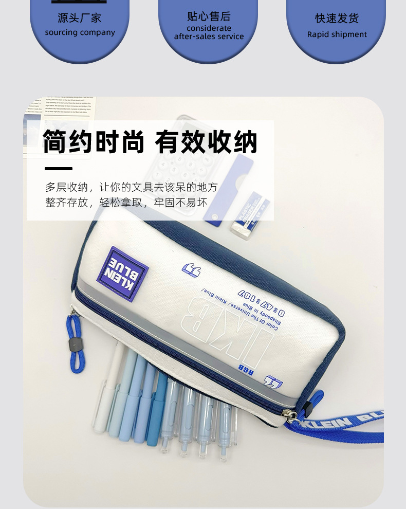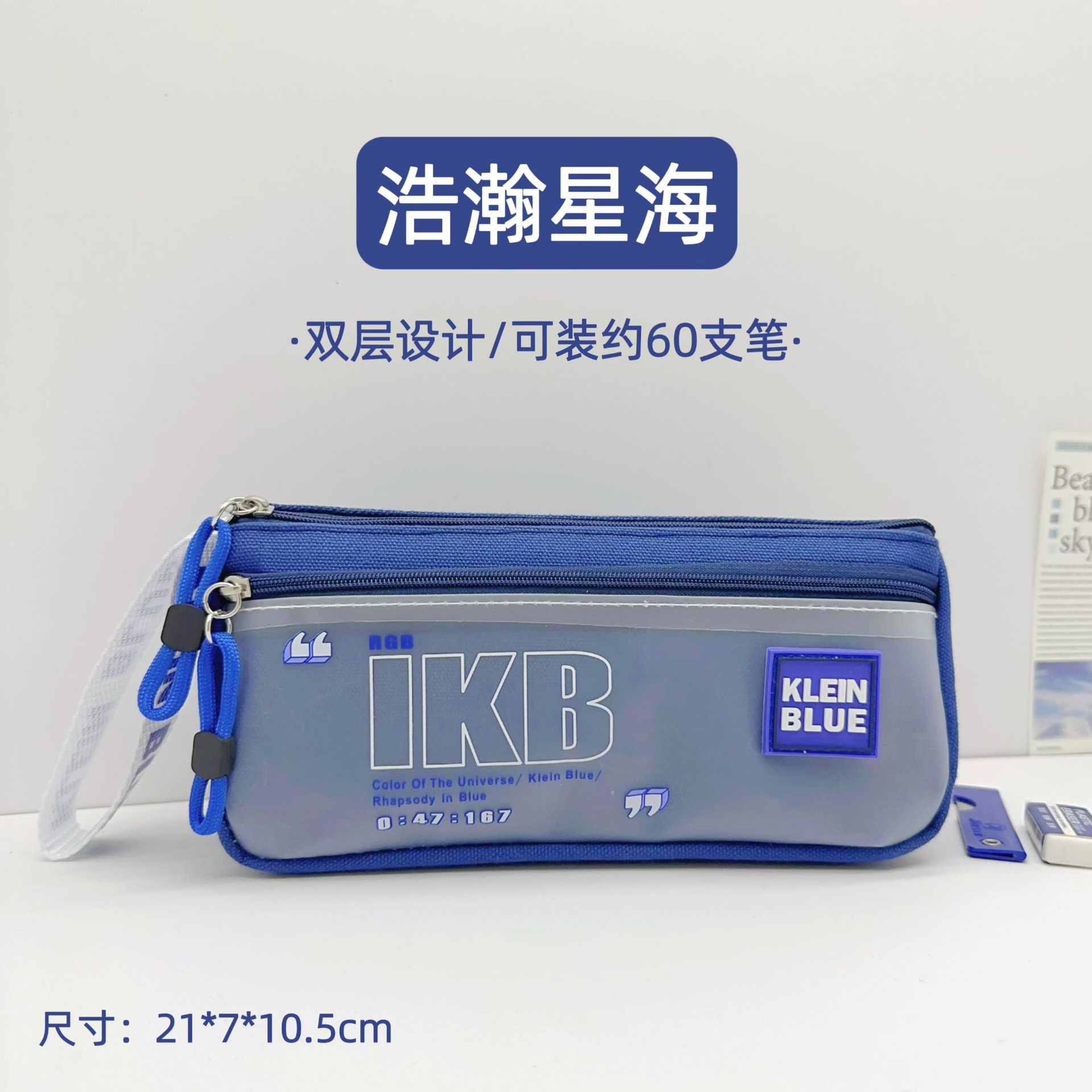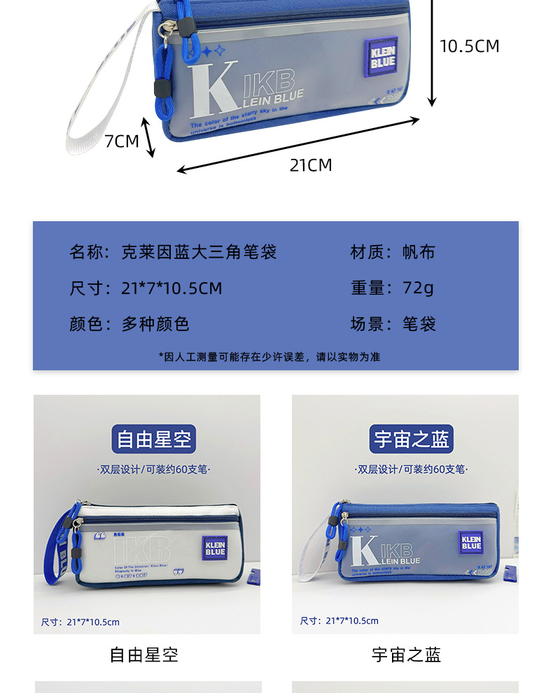 클라인 블루 연필 가방 소년 투명 대용량 얼룩 방지 문구 가방 초등학생을위한 고가 문구 상자