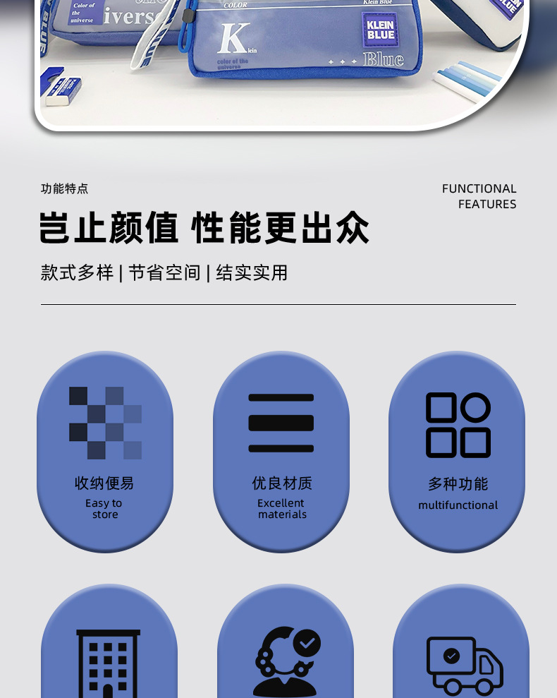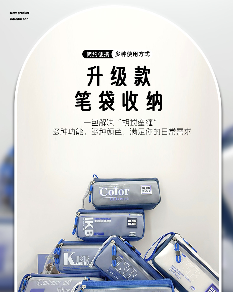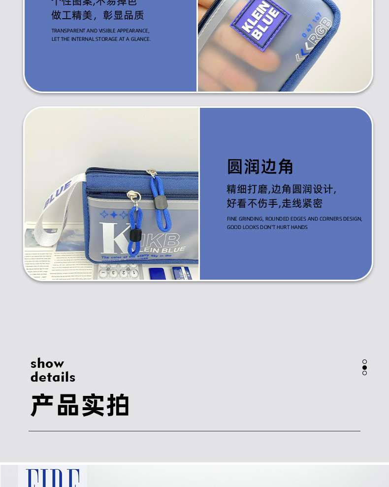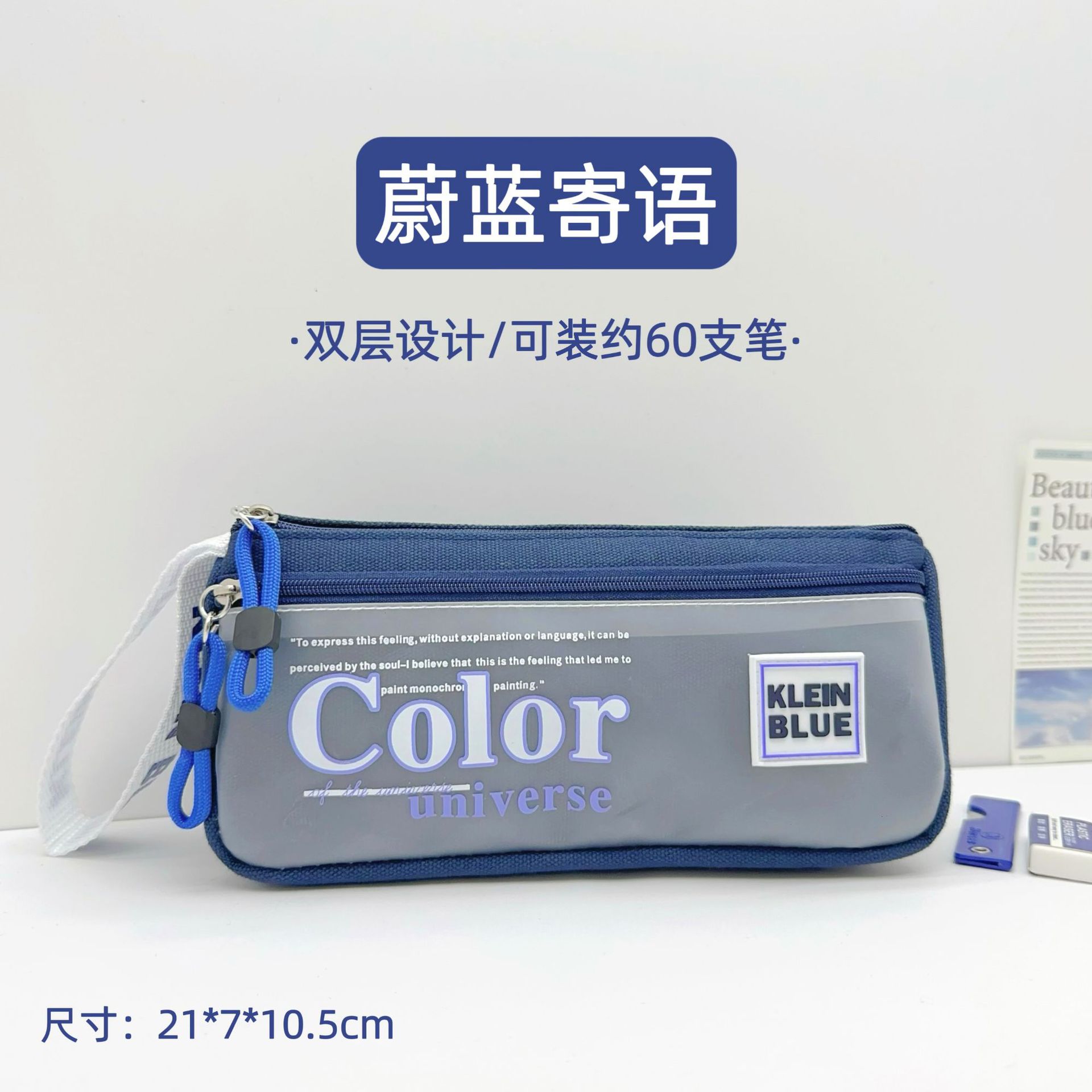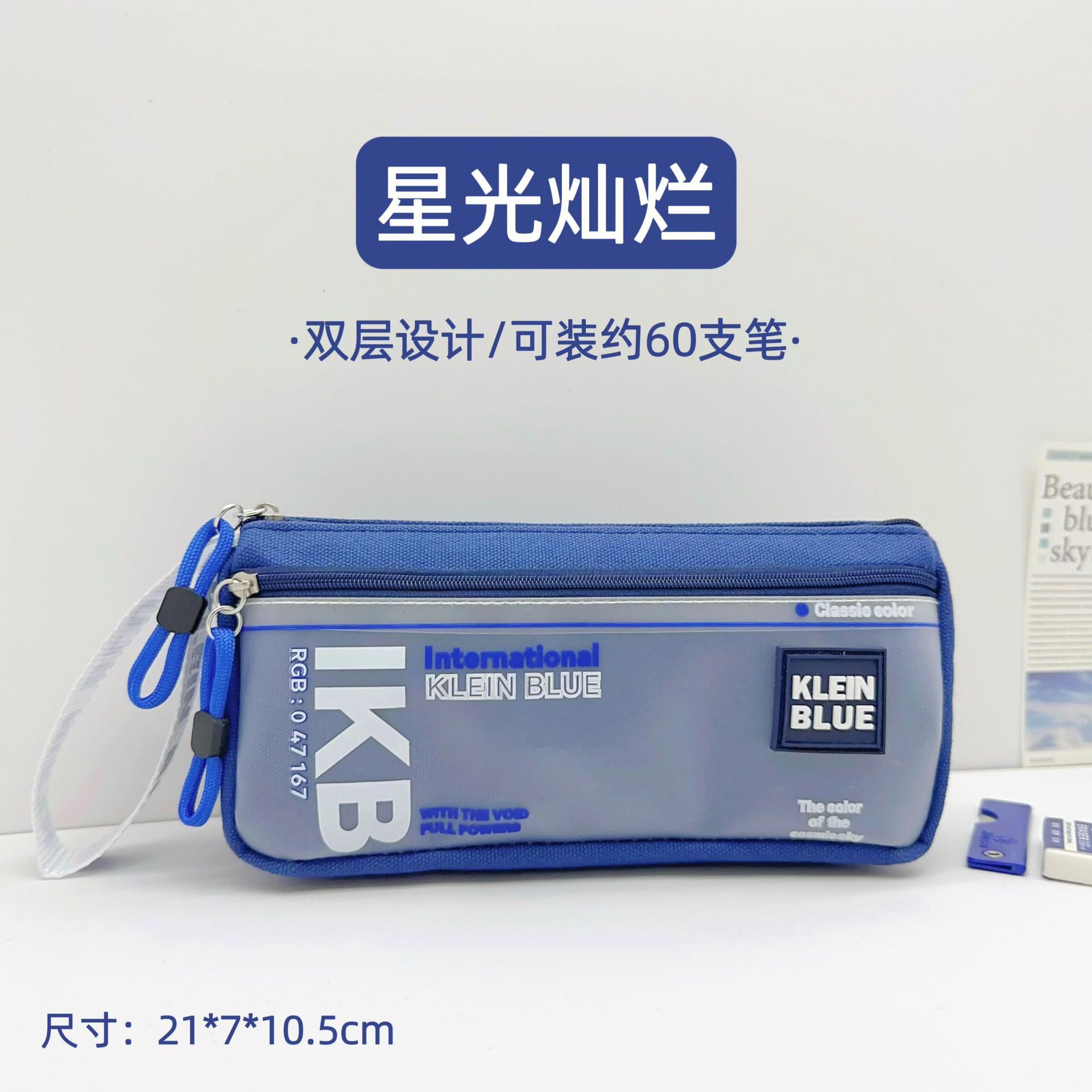 클라인 블루 연필 가방 소년 투명 대용량 얼룩 방지 문구 가방 초등학생을위한 고가 문구 상자