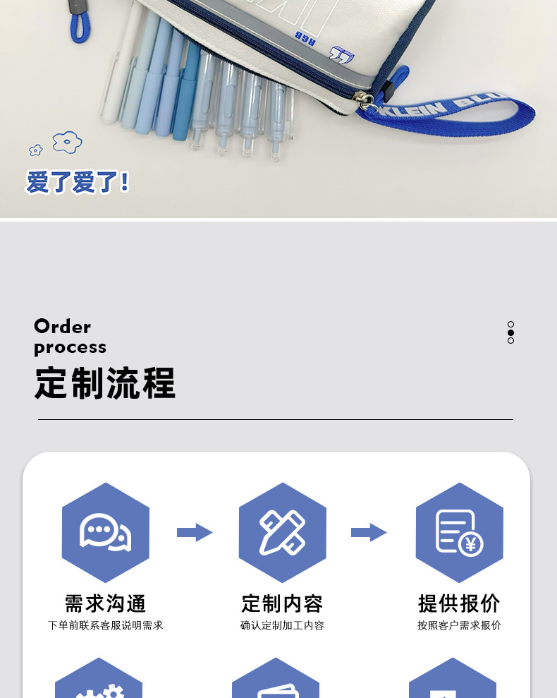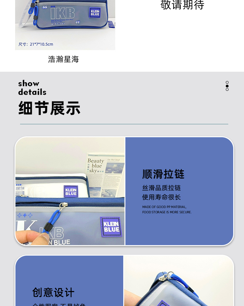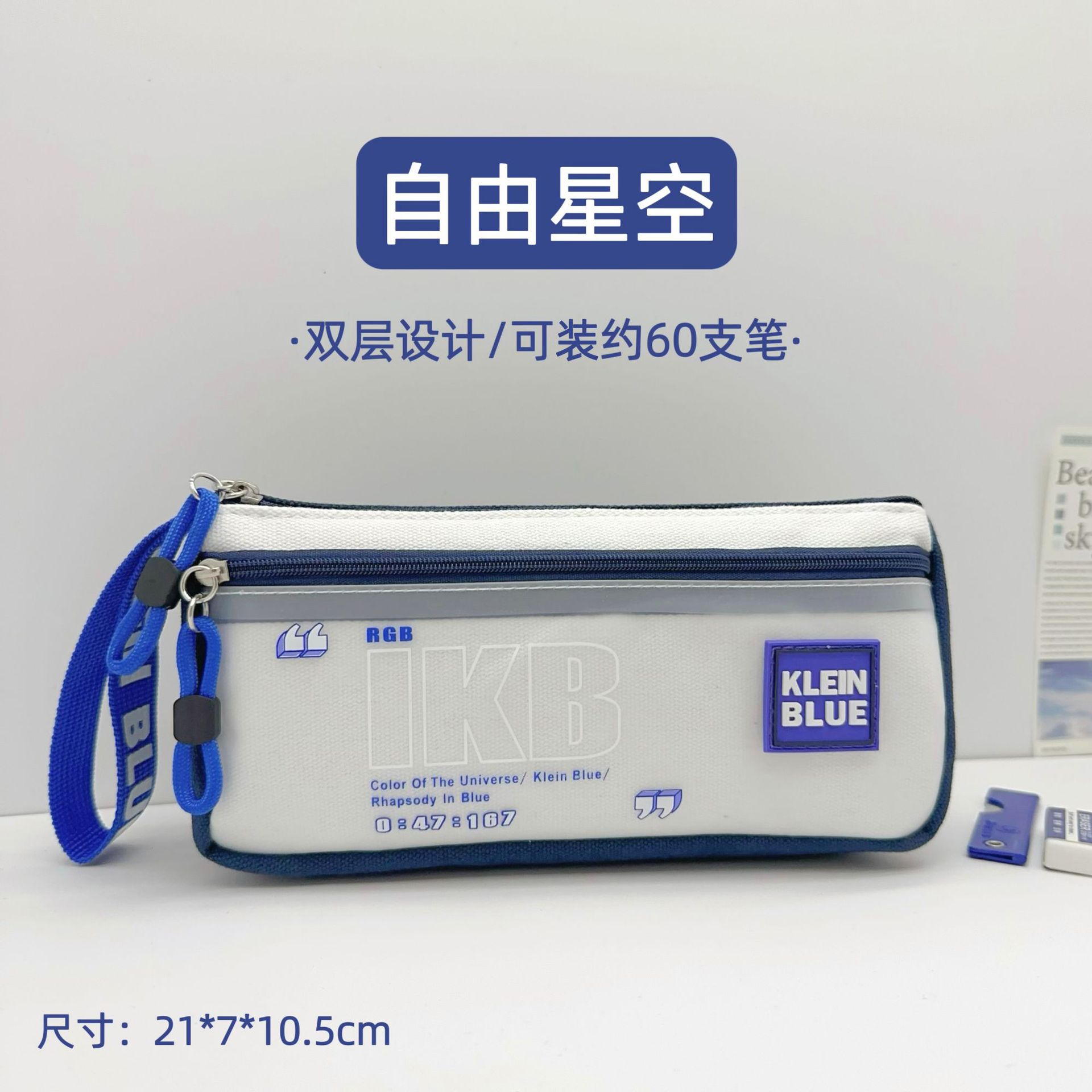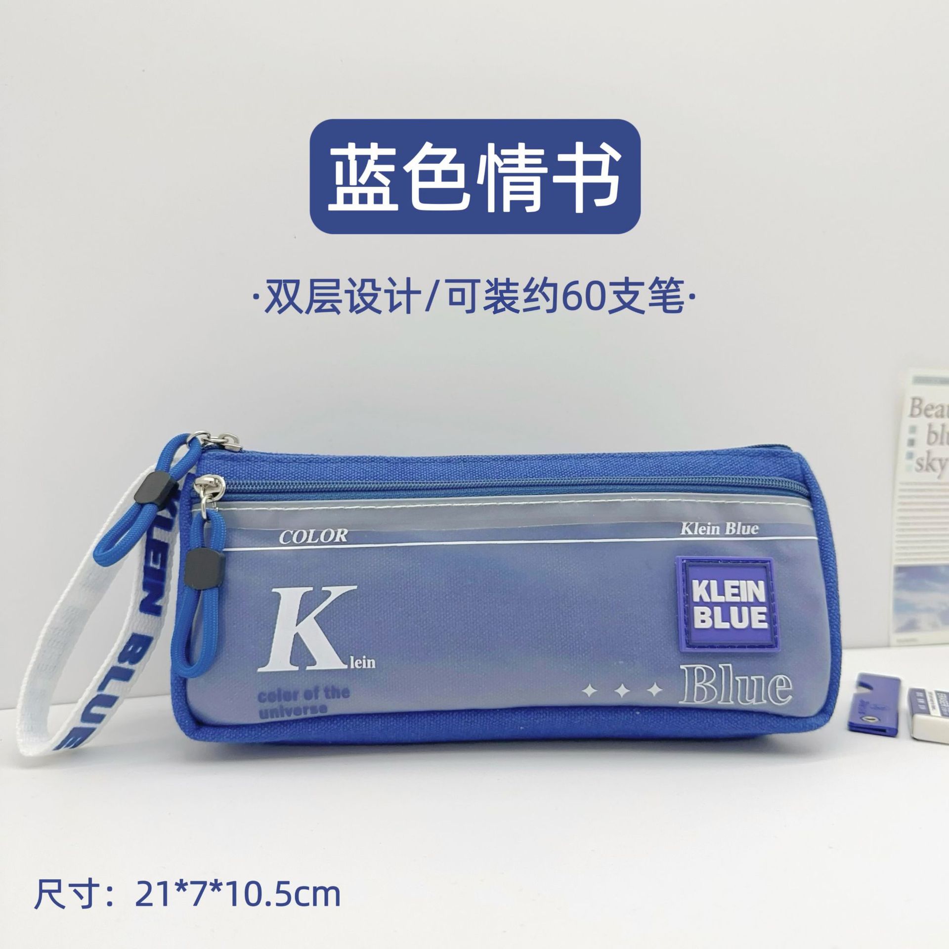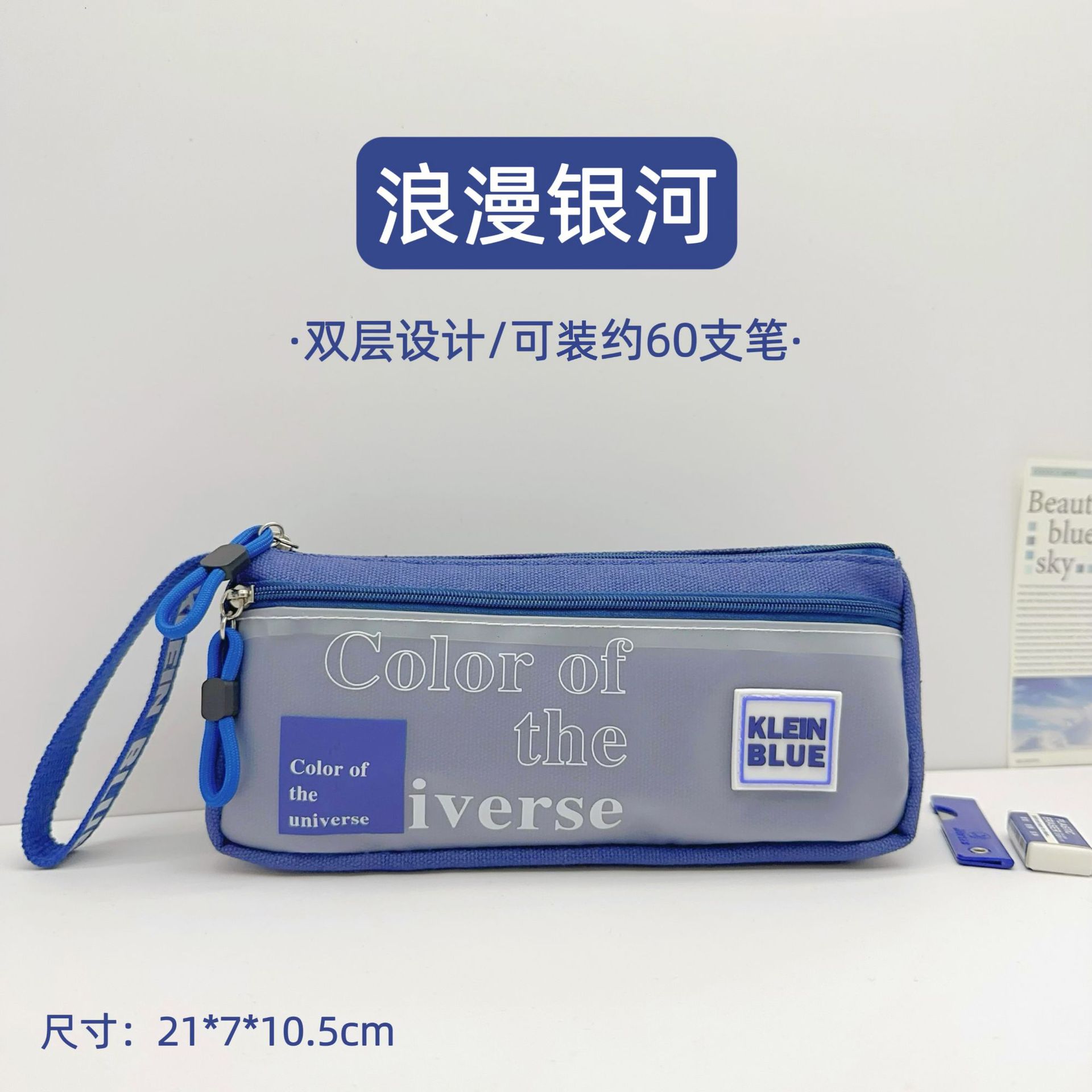 클라인 블루 연필 가방 소년 투명 대용량 얼룩 방지 문구 가방 초등학생을위한 고가 문구 상자스토어 가기