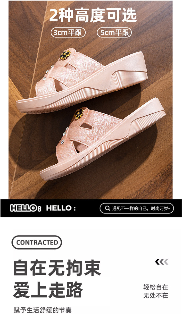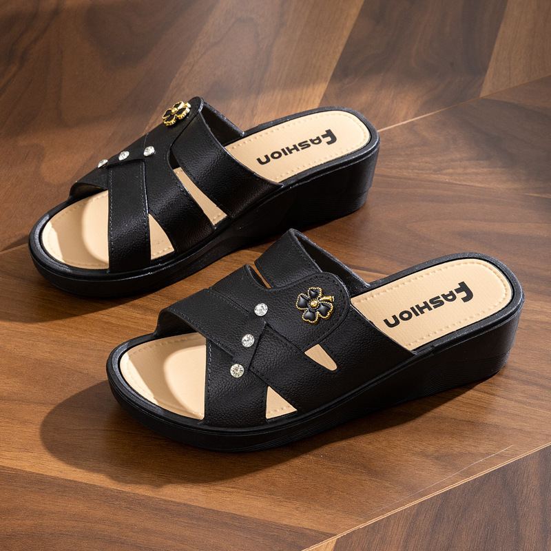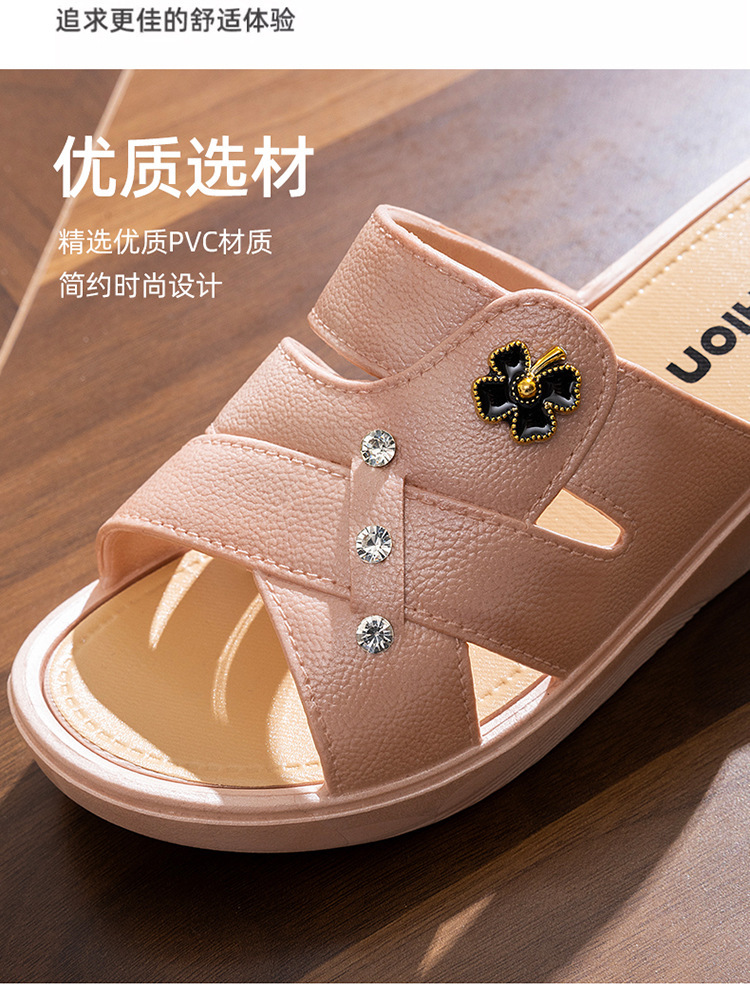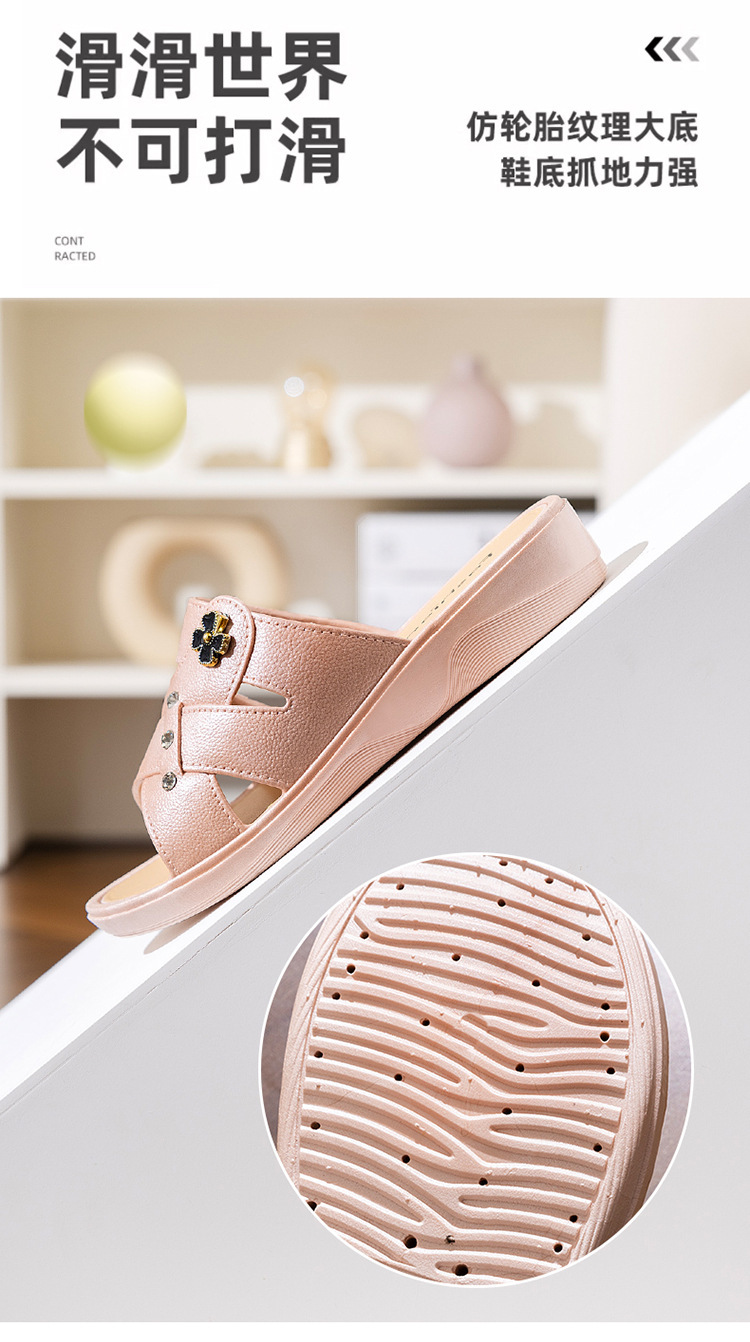 여성용 하이힐 슬리퍼 여름 외부 착용 두꺼운 밑창 유행 홈 미끄럼 방지 어머니 신발 부드러운 밑창 소셜 웨지 슬리퍼