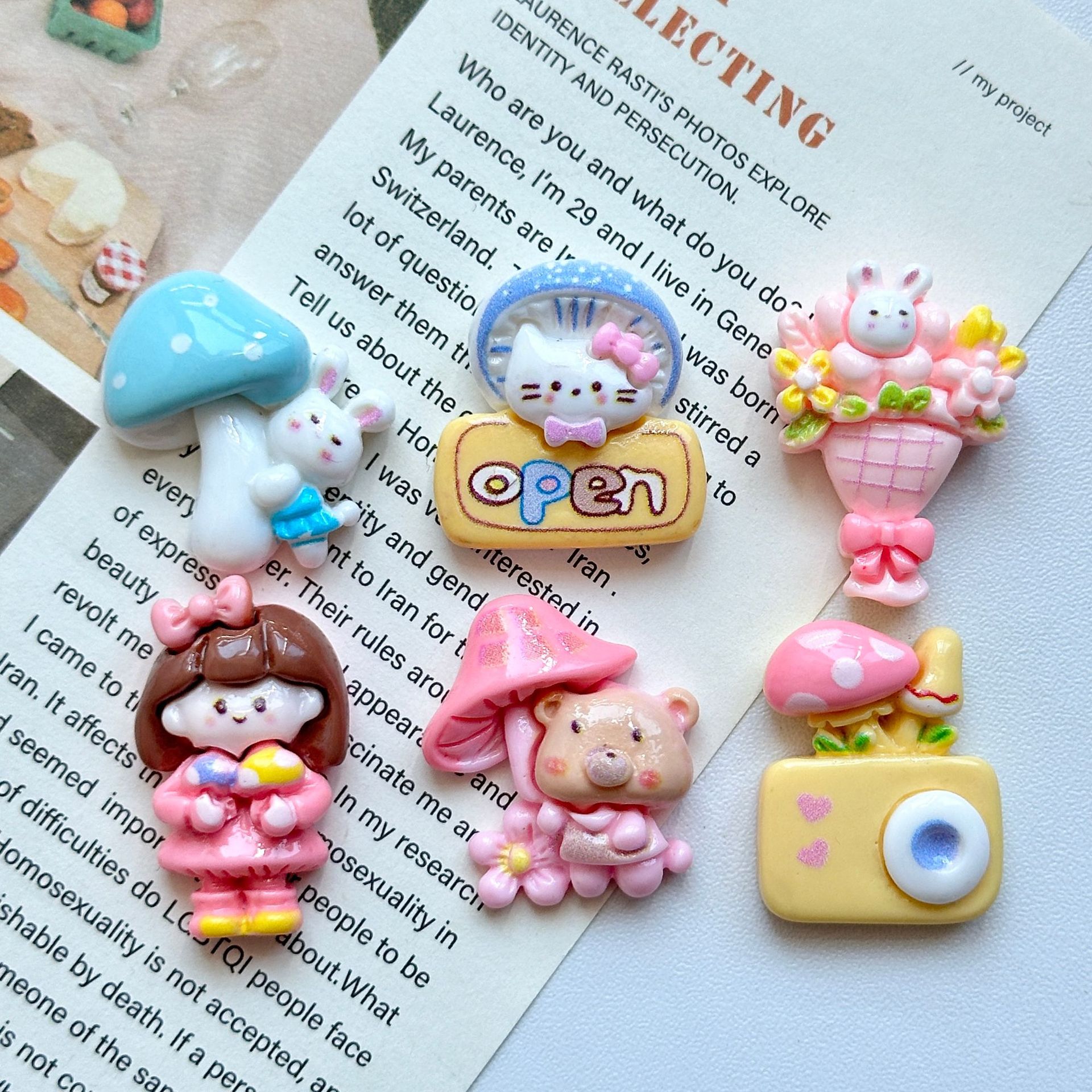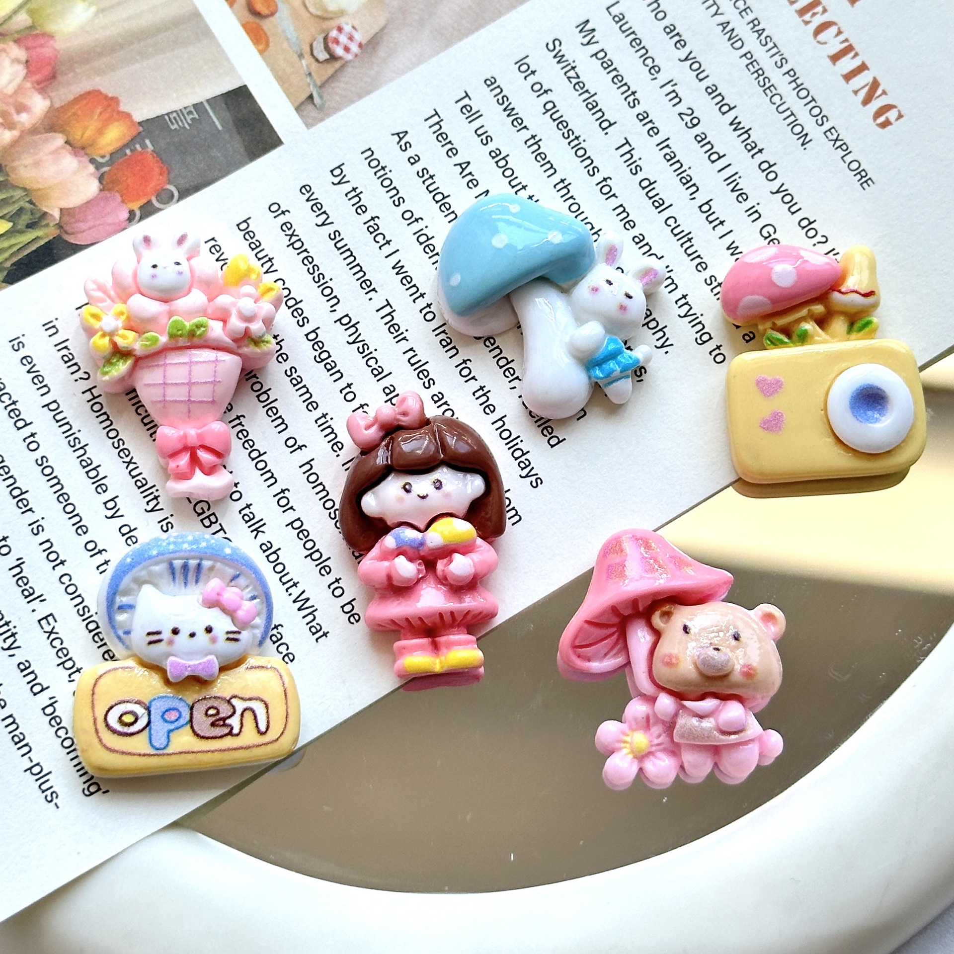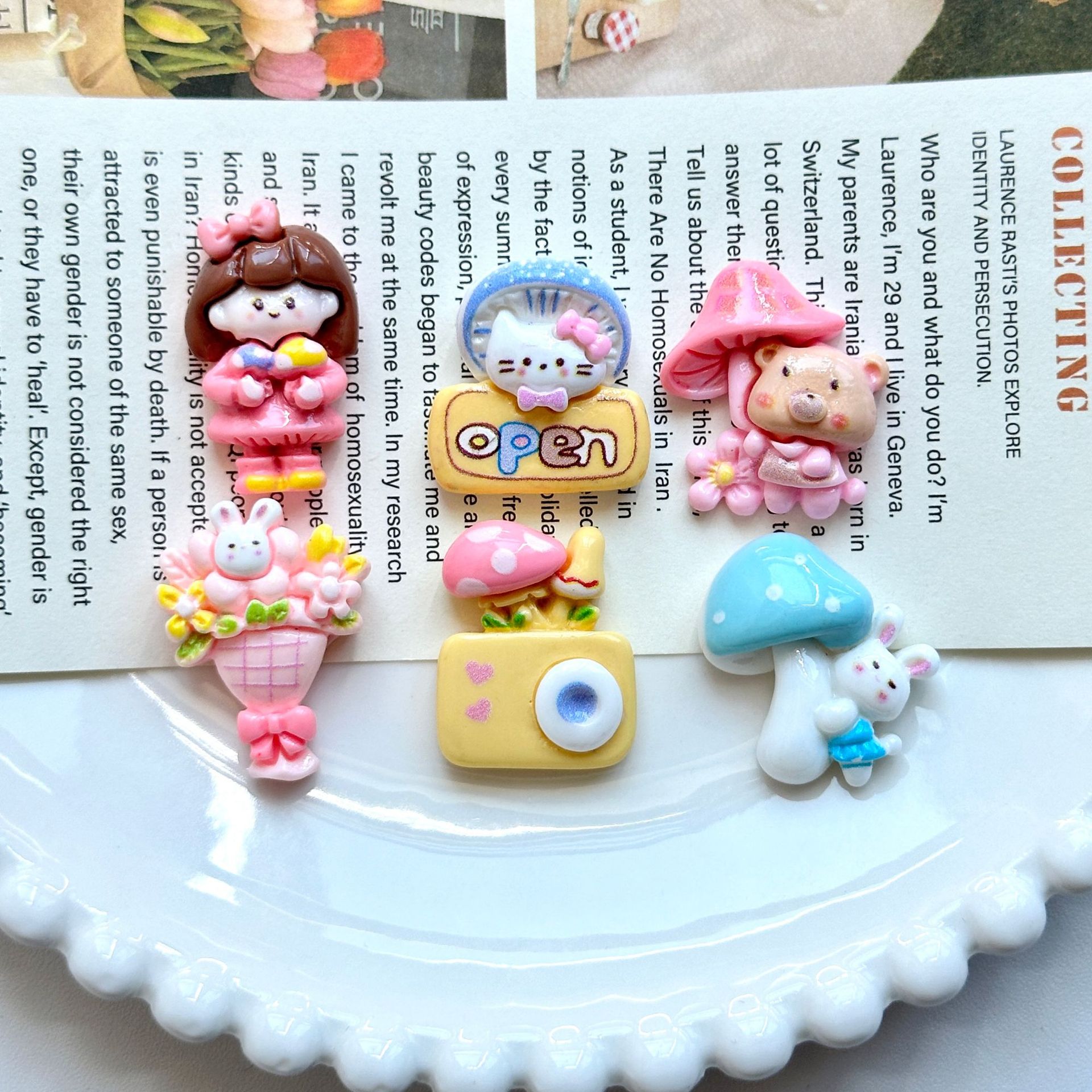 만화 귀여운 버섯 소녀 카메라 꽃다발 키티 고양이 곰 diy 크림 껌 머리 장식 수지 소재