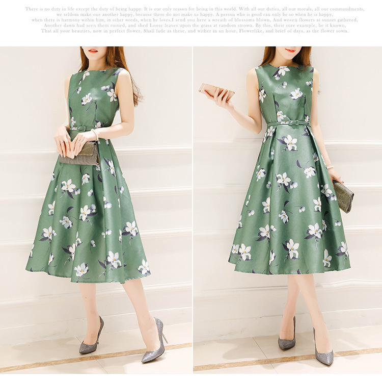 2020 유럽 역 여름 새로운 여성 한국식 인쇄 중간 길이의 민소매 원피스 슬리밍 A 라인 스커트