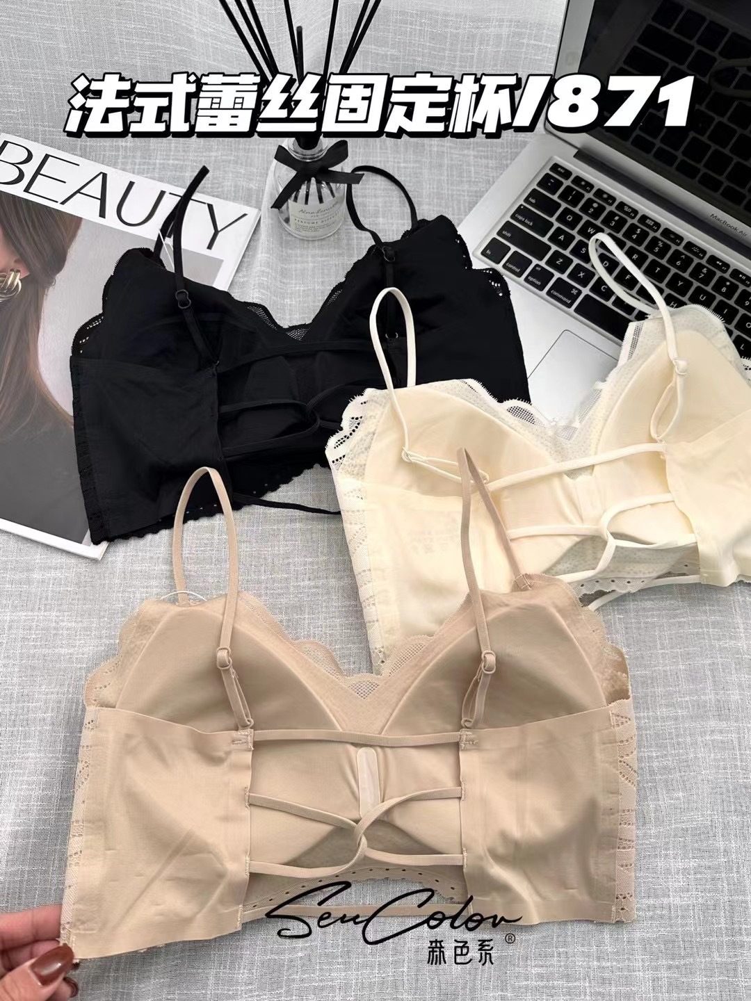 871 # 섹시 원활한 원피스 레이스 패션 백리스 스트랩 가슴 패드스토어 가기